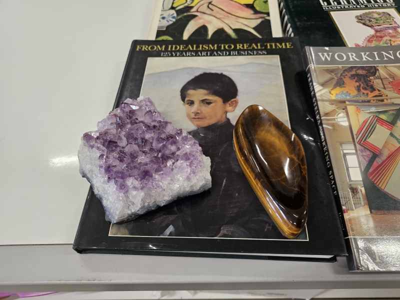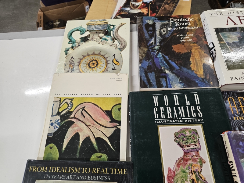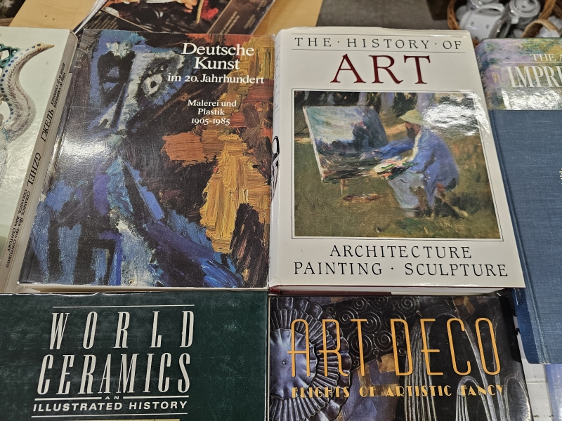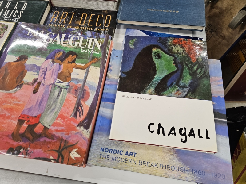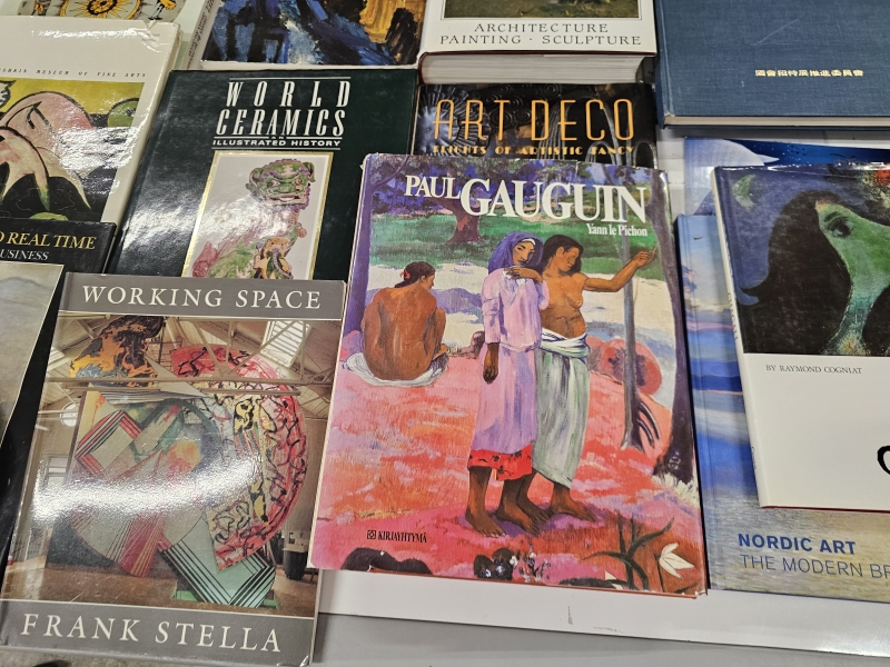 #2233 Erä ulkomaalaisia taidekirjoja: Mm. Historic of art, Paul Gauguin + kaksi korukiveä