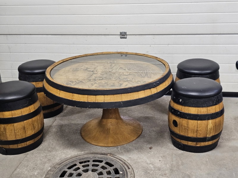 #2259 - "Tynnyripöytä" + 4kpl tuoleja, H.Mustonen & E.Koiranen