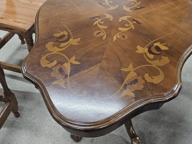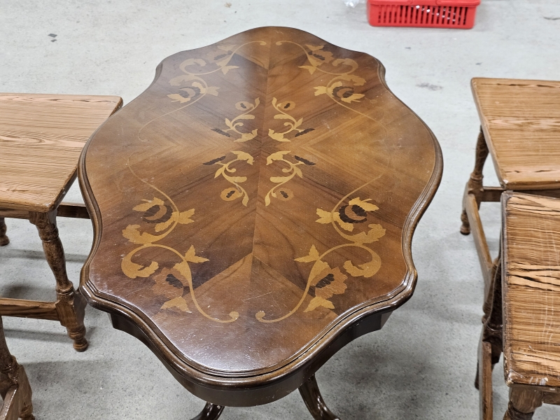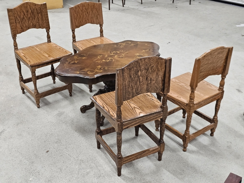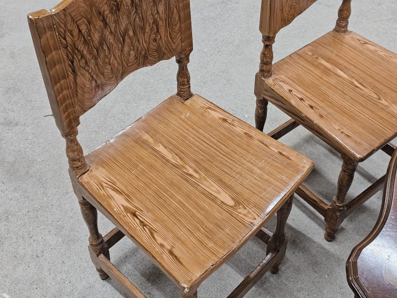 #2459 - 4kpl vanhoja ootrattuja tuoleja & sohvapöytä