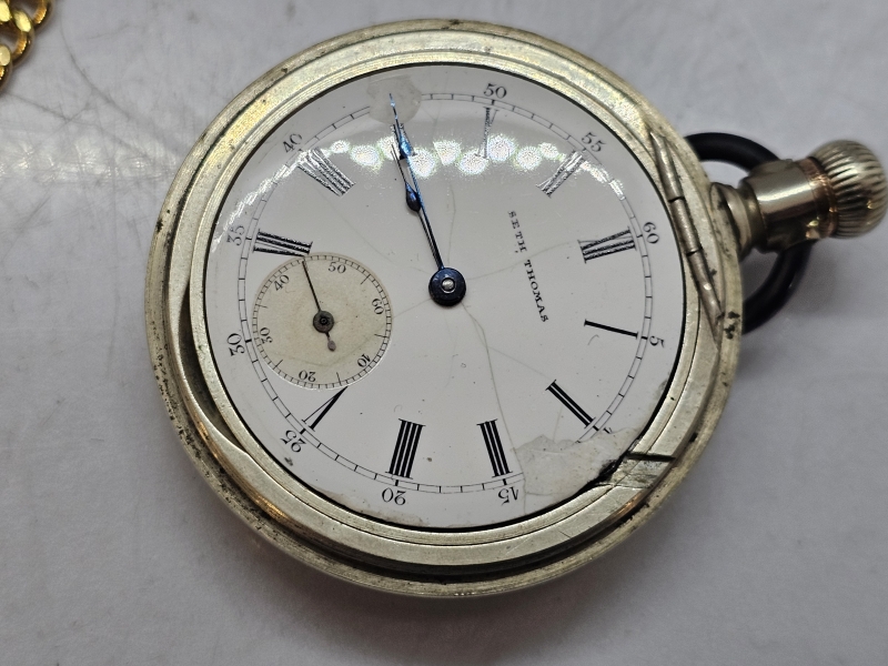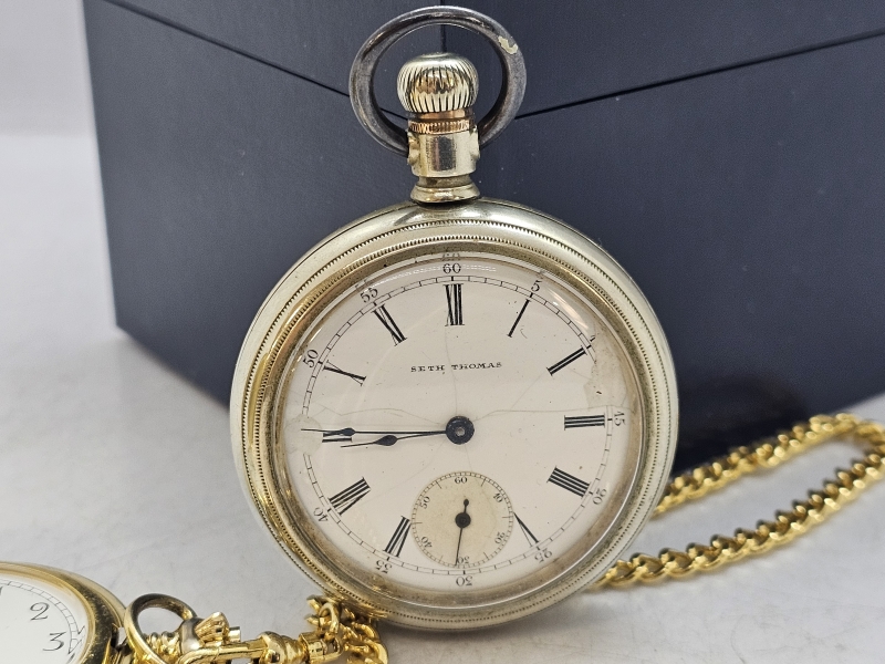 #1438 2kpl taskukelloja: Geneve / Seth Thomas + hopeinen kynttilänjalka [käyttämätön]