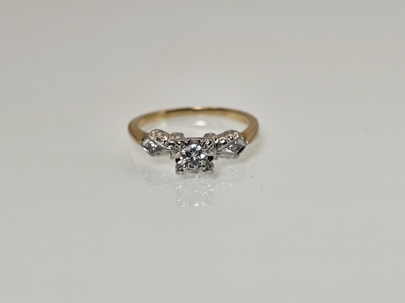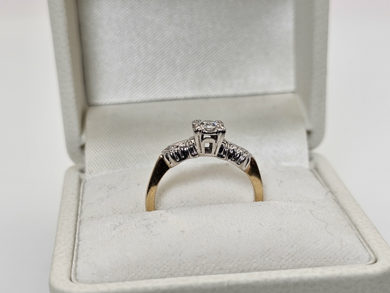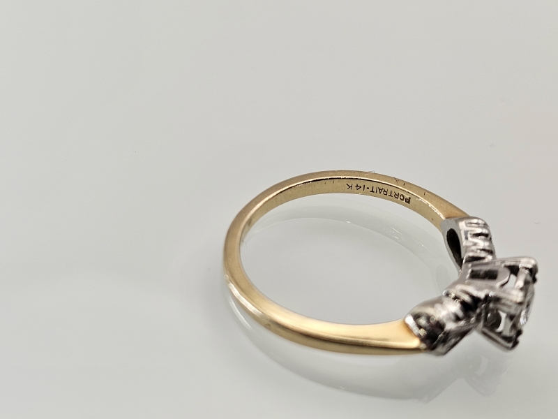 #1488 14k kelta- / valkokultainen sormus timanteilla joista suurin n. 0,18ct, 2,6g