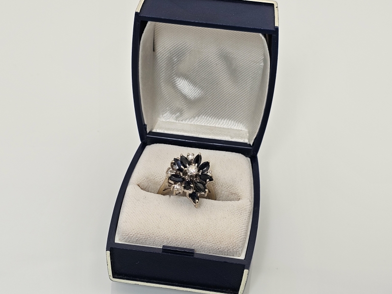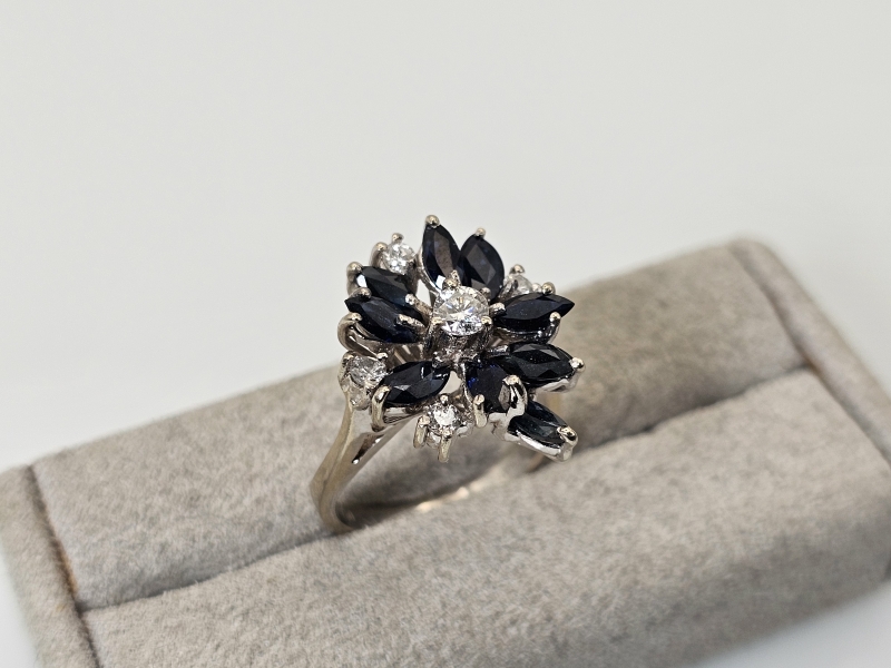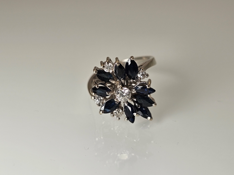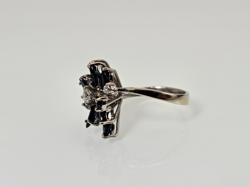#1499 - 18k valkokultainen sormus jossa sinisafiireja ja timantteja, 6,26g
