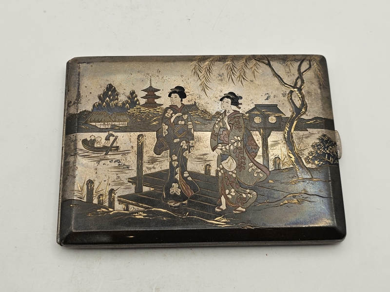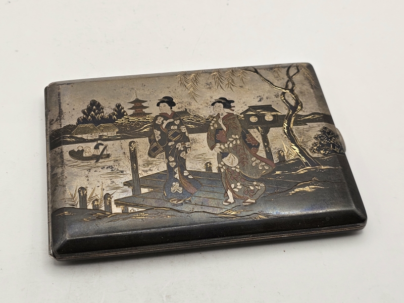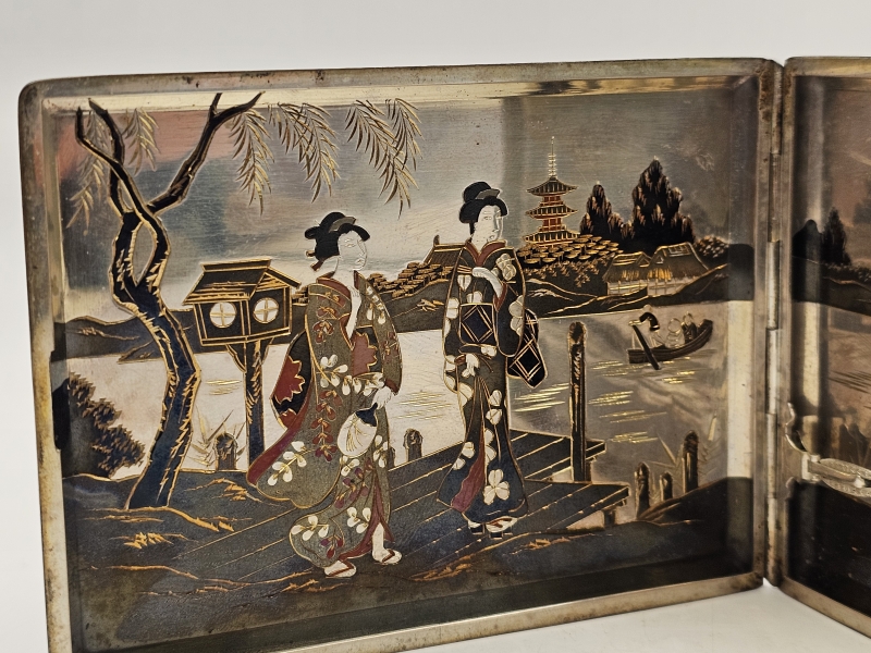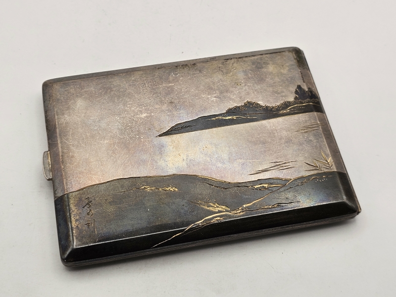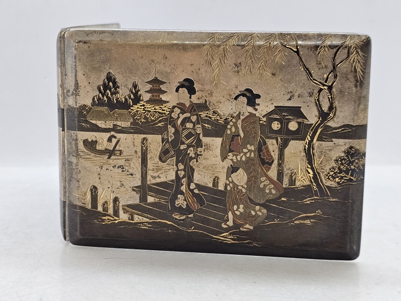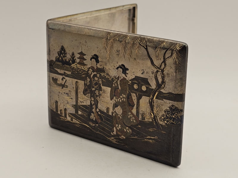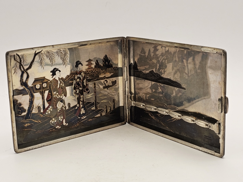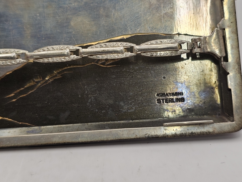#1329 Hopeinen itämainen savukerasia kauniilla koristuksilla, Kobayashi Sterling