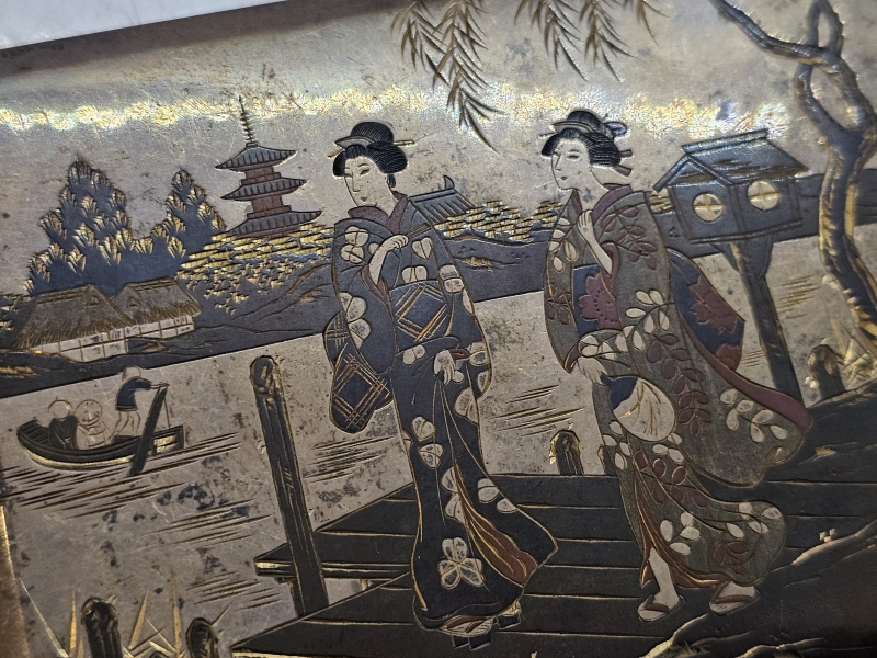 #1329 - Hopeinen itämainen savukerasia kauniilla koristuksilla, Kobayashi Sterling