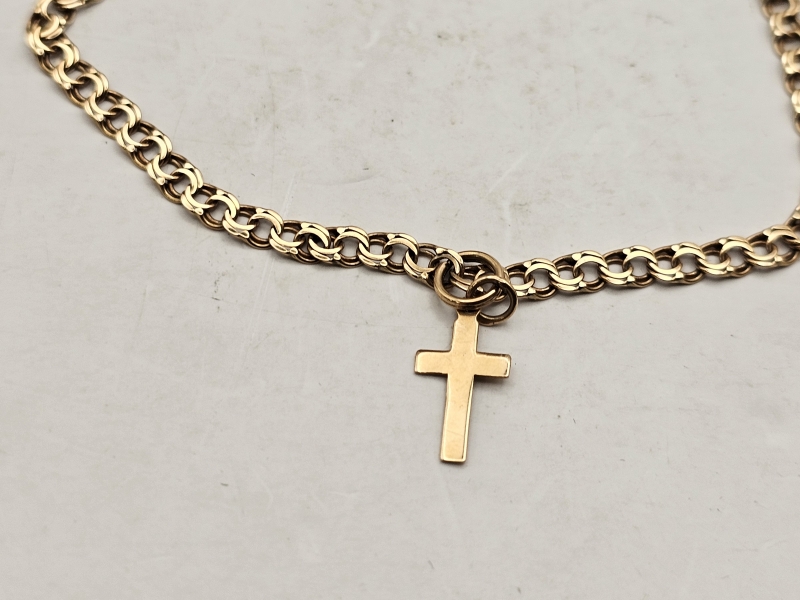 #1442 14k kultainen ranneketju ristillä, 4,44g