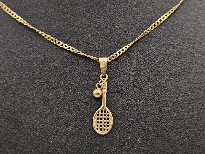 #1443 14k kultainen kaulaketju tennismailalla, 4,22g