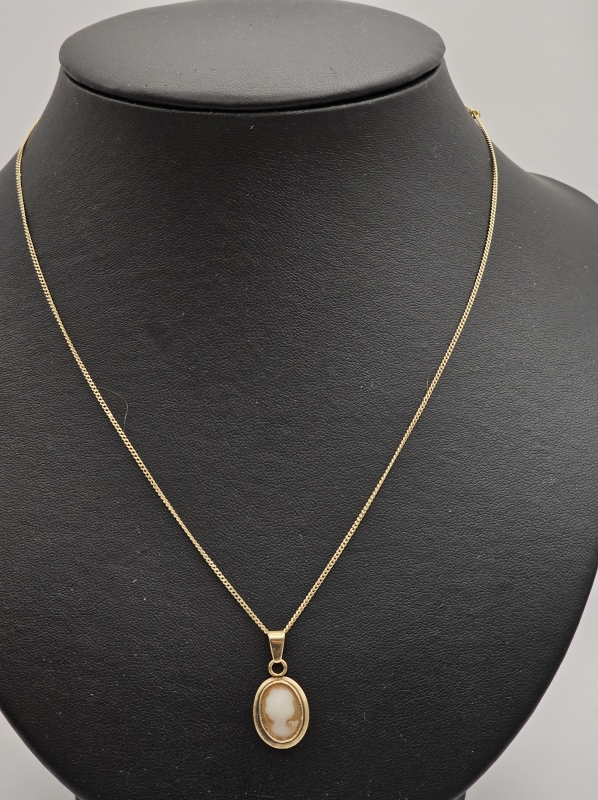 #1445 14k kultainen kaulaketju camee -riipuksella, 2,87g