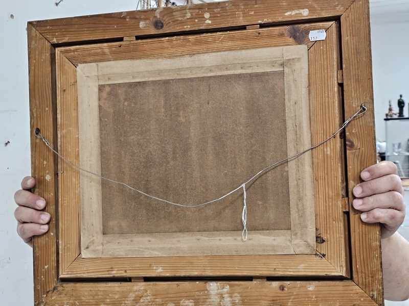 Kehyksineen 57,5cm x 50cm. Tullut myyjälle noin 22v sitten huutokaupasta, aitoutta ei todennettu
