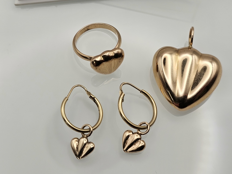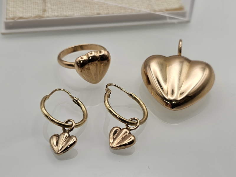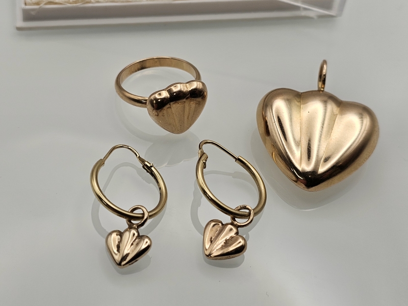#1469 - 14k kultainen sydänkorusarja, design Ristomatti Ratia, 14,42g