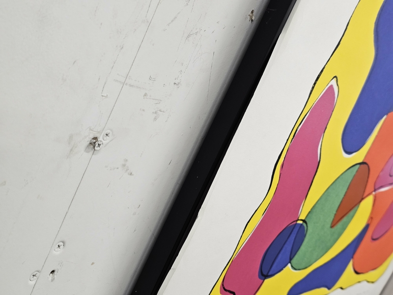 Kehyksineen 90cm x 64cm. Kehys hieman auennut