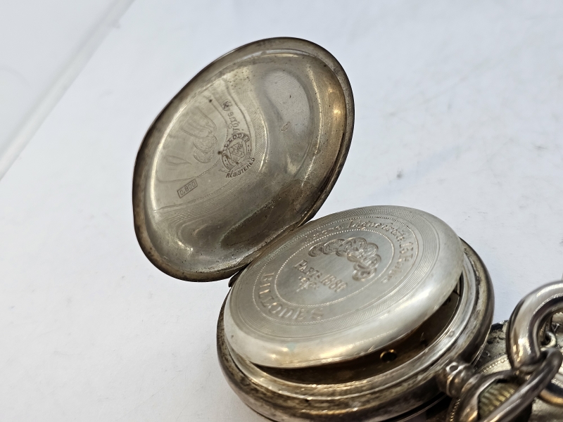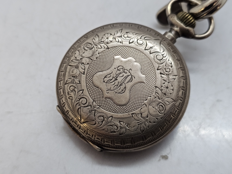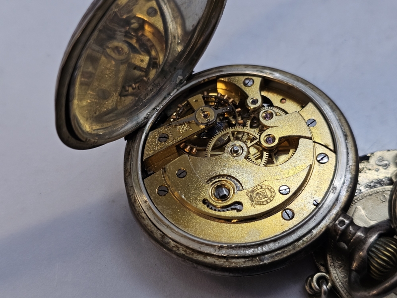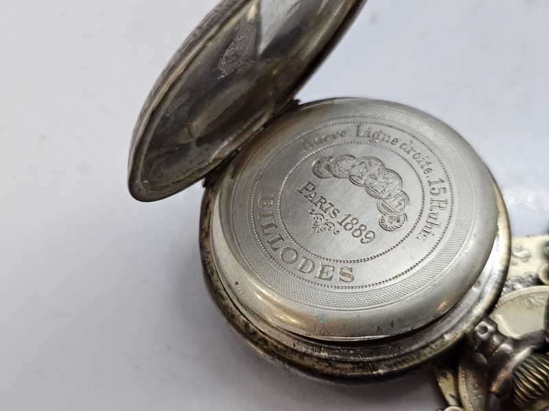 #1471 Hopeinen Billodes taskukello hienoilla kolikkoperillä, provenienssi: Remu Aaltosen kokoelmasta