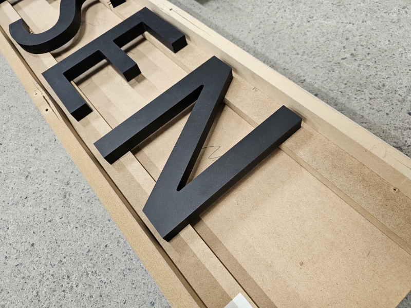 Kirjaimien korkeus 20cm. Ovh. noin 2000e