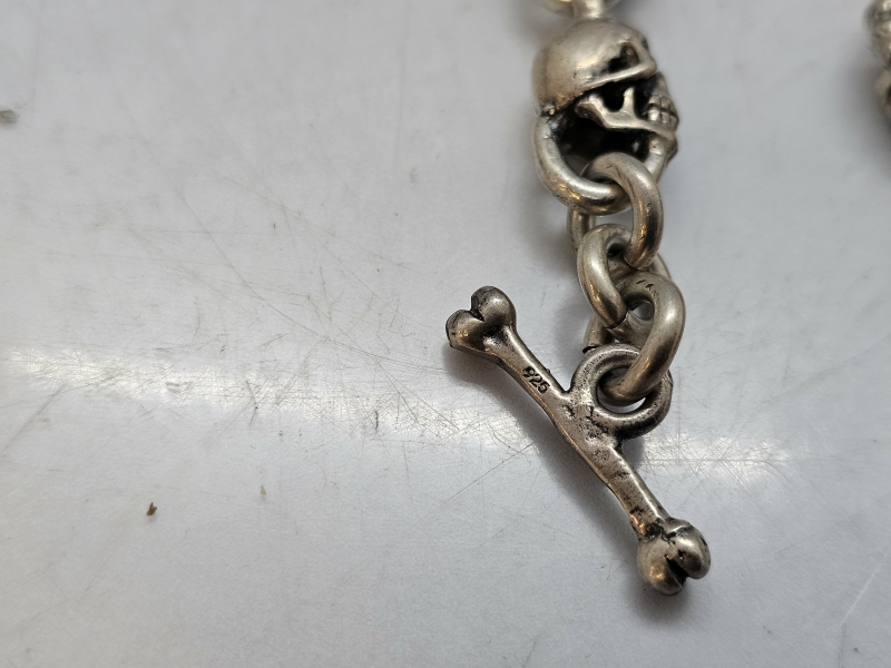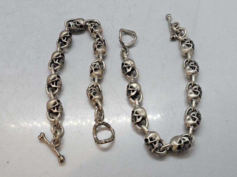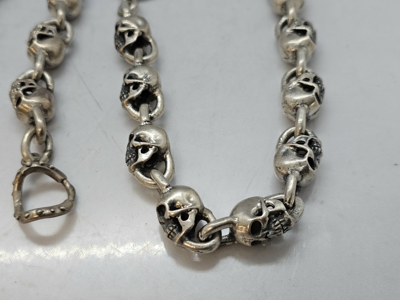 #1533 - 2kpl hopeisia pääkalloketjuja, saa yhdistettyä pitkäksi ketjuksi