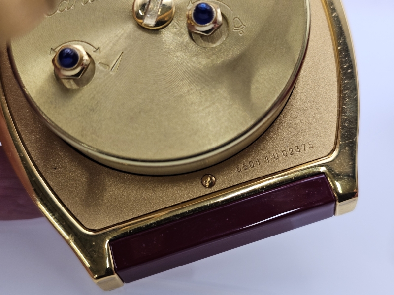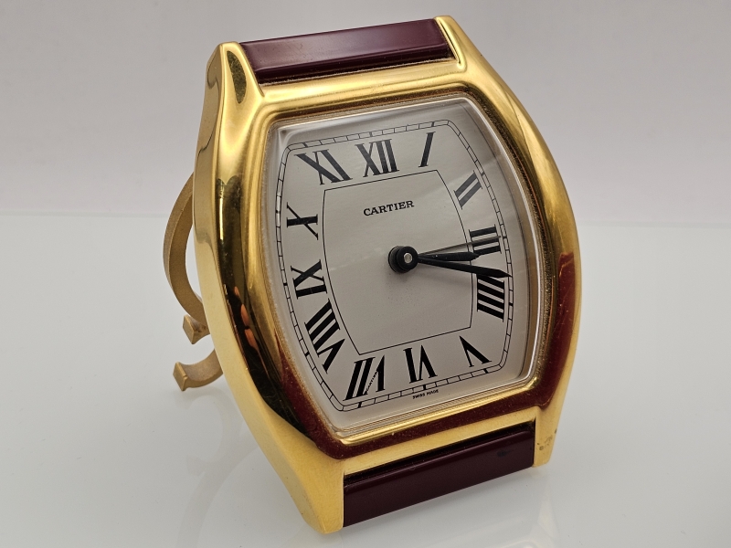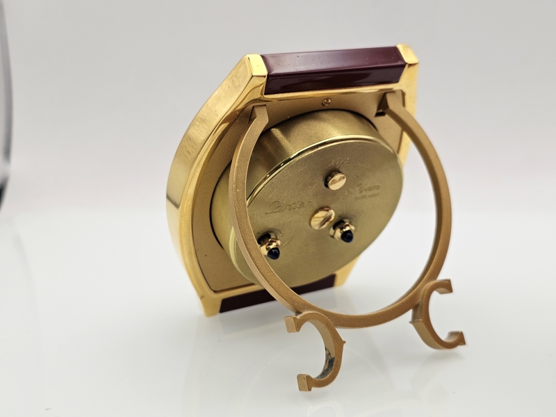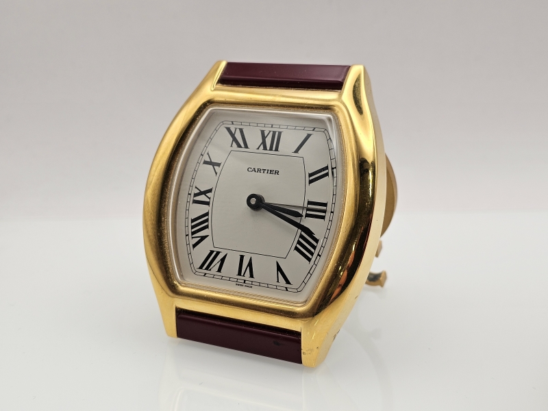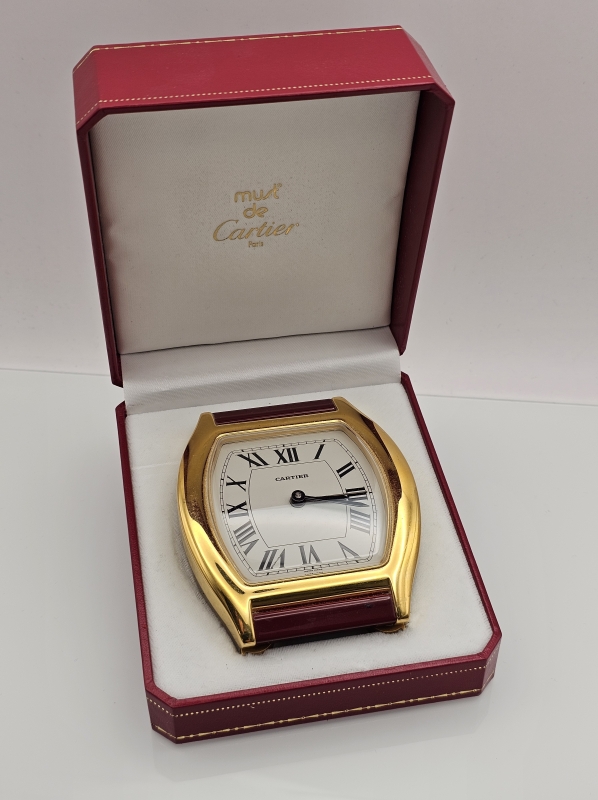 #1232 Cartier pöytäkello / matkakello rasiassa + aitoustodistukset ym.