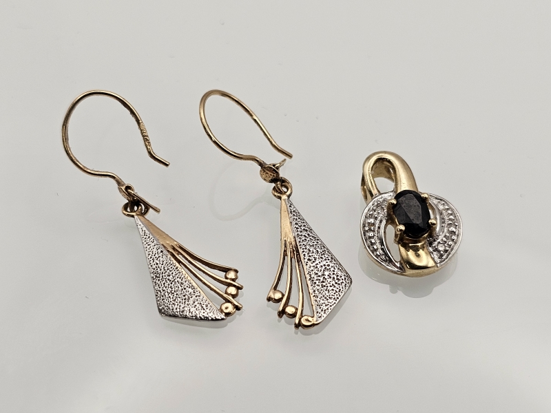 #1563 14k kultaisen korvakorut ja 14k riipus, 4,56g