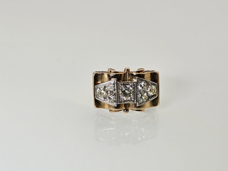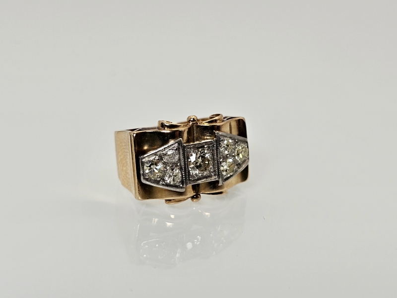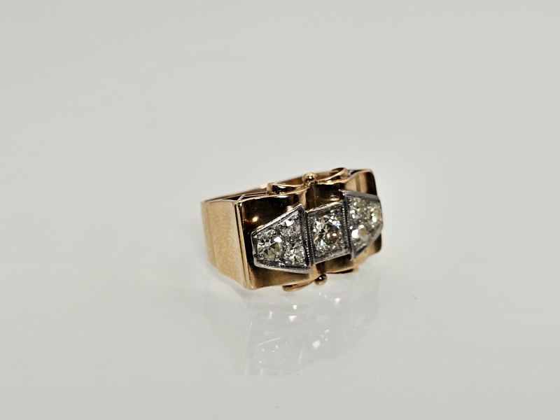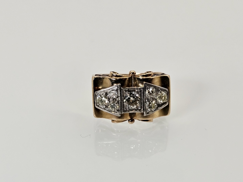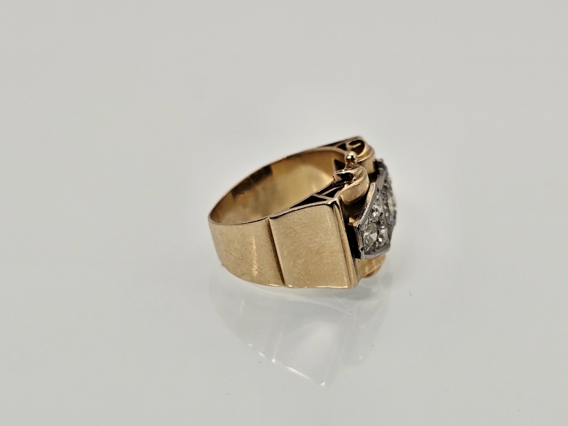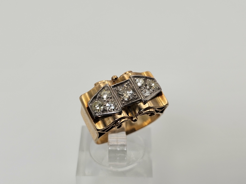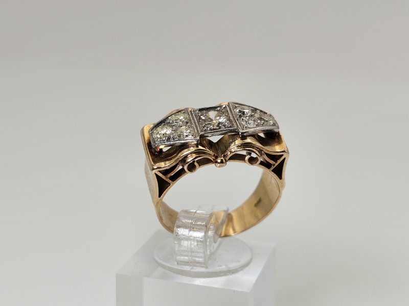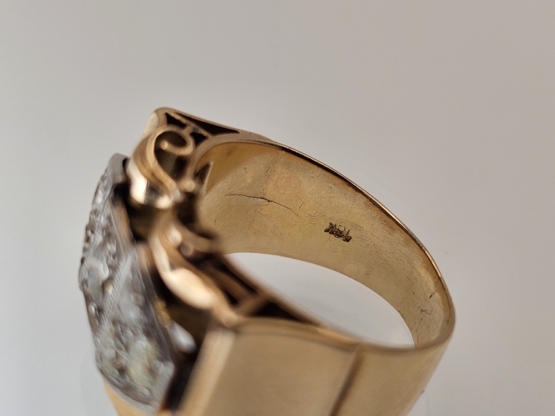 #1572 18k kultainen sormus runsailla timanteilla [noin 0,64ct ja isoin noin 0,24ct], 7,31g