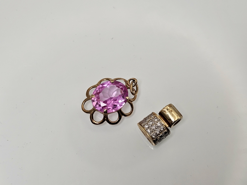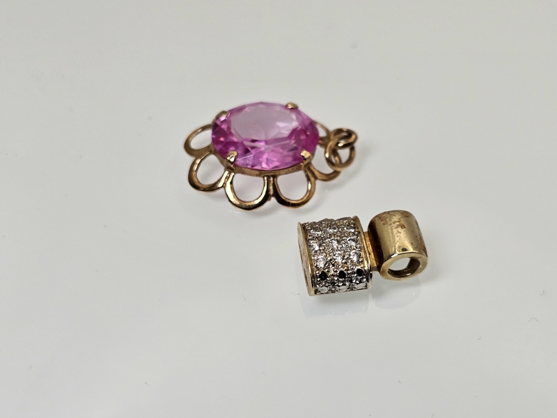 #1575 - 2kpl 14k kultaisia riipuksia joista toisessa timantit, 3,65g