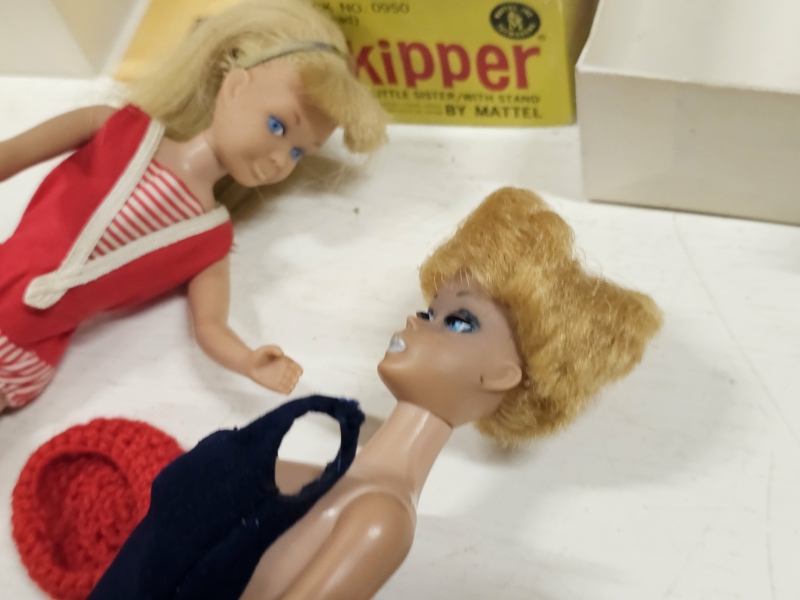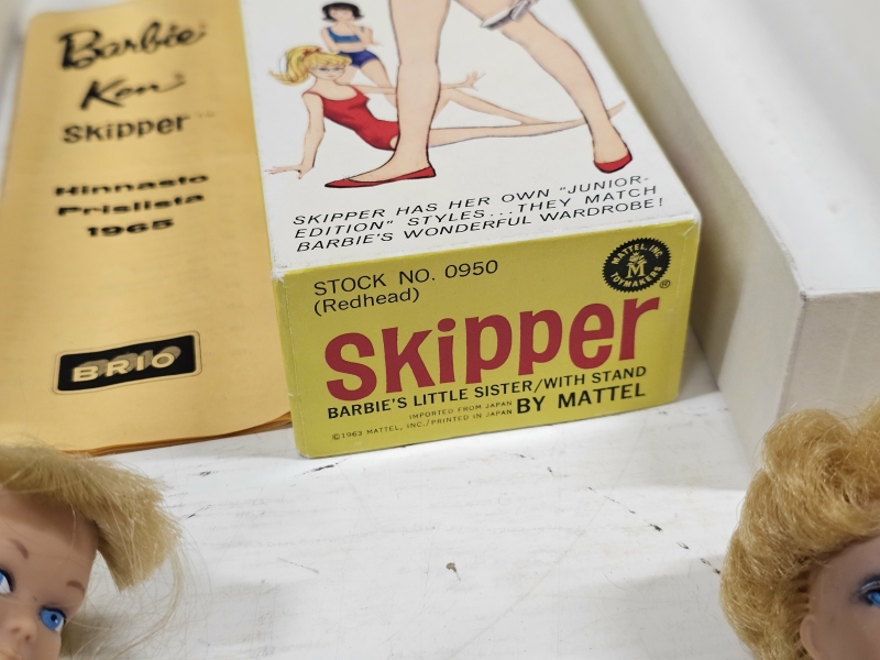 #1984 - 2kpl Barbie -nukkeja joista toinen Skipper, vuosilta 1959 ja 1962, alkup. pakkauksissa