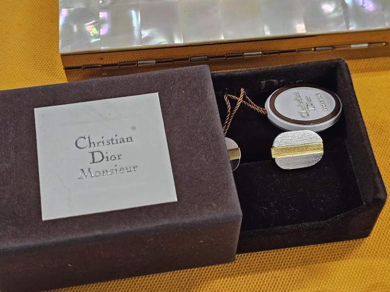 #1608 Erä tavaraa: Mm. Dior korvakorut ja kalvosinnapit, Boss kalvosinnapit ym.