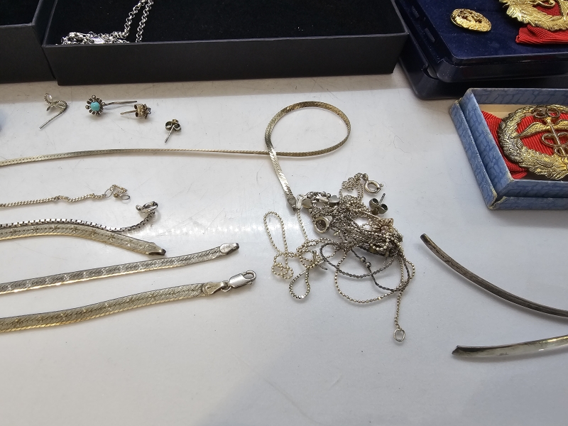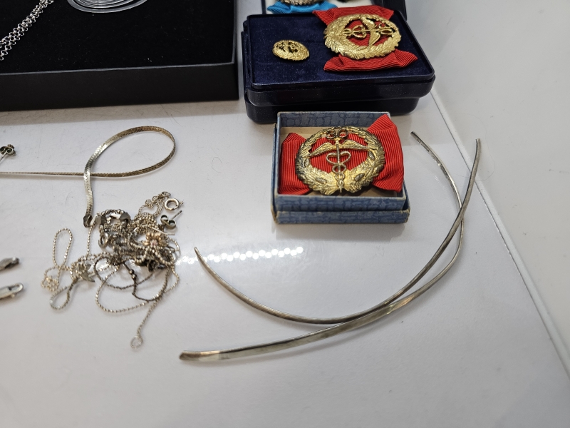 #1017 Erä hopeakoruja ym.: Mm. Liisa Vitali, Tapio Wirkkala, yrittäjämitaleita ym.