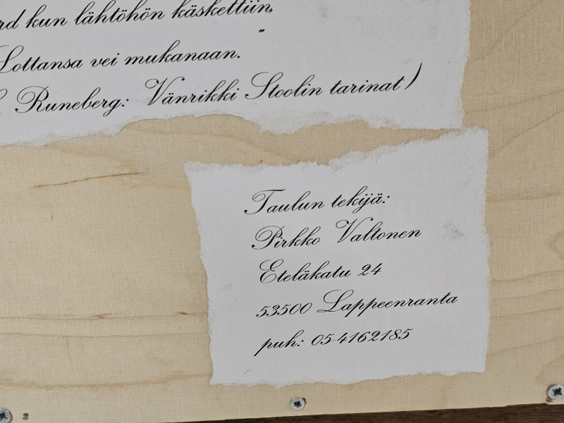 #1799 Militariaa: Mm. numeroitu Pirkko Valtonen kipsitaulu