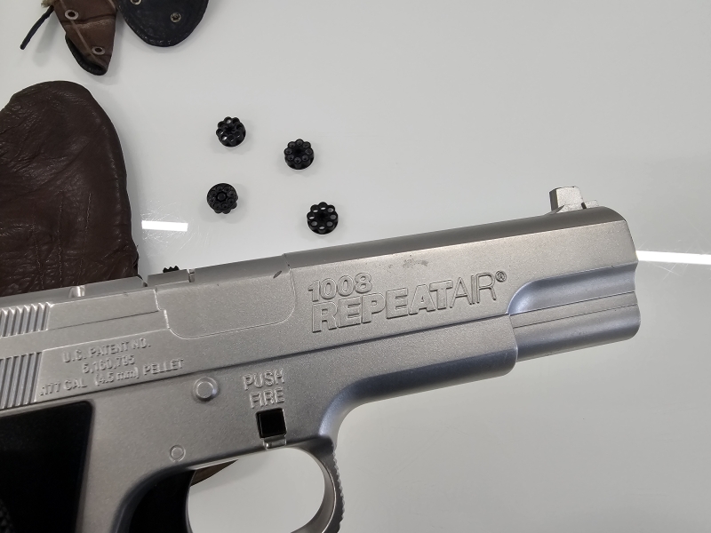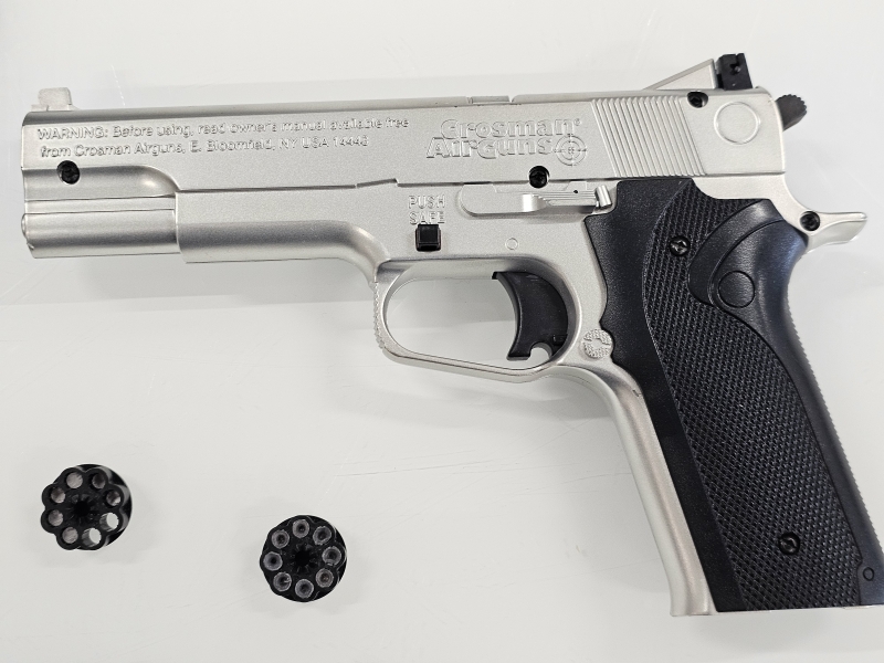 #1678 Crosman ilmapistooli + viisi rullaa + moottoripyöräilijän hattu & hanskat