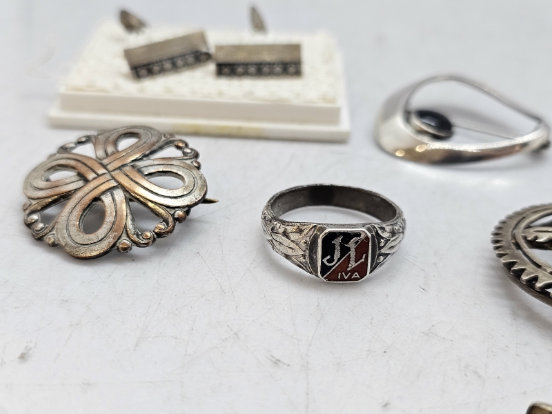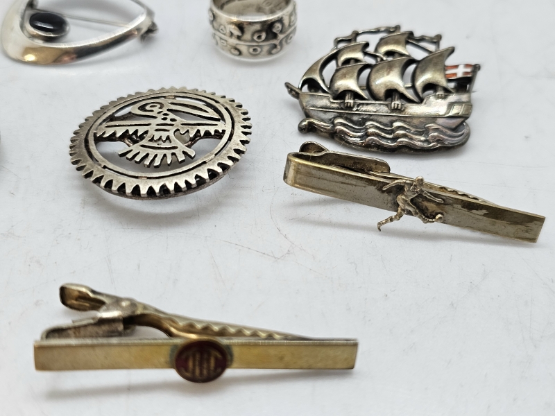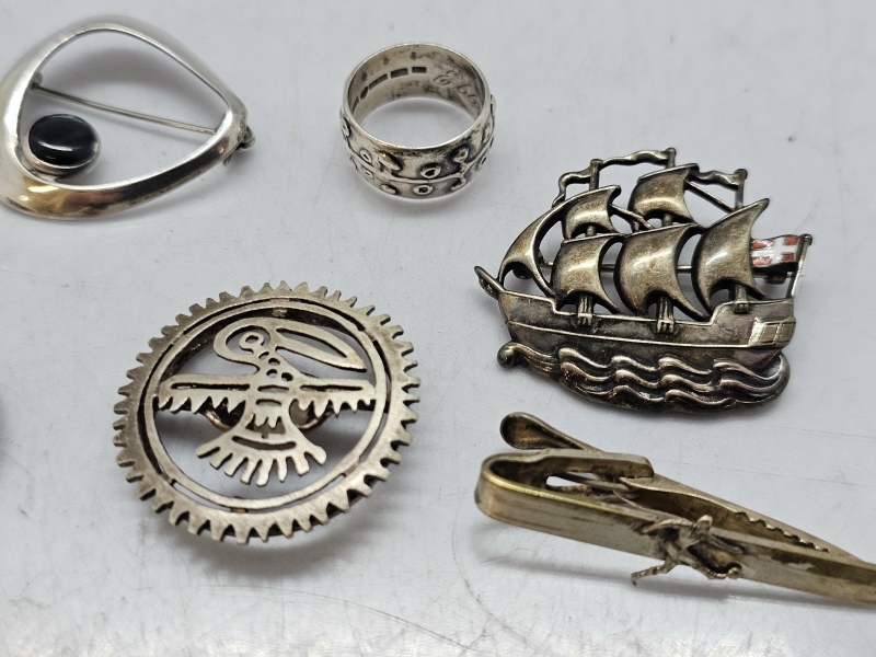 #1646 Erä hopeakoruja [mm. Mikko Kuustonen "Aurinkolintu"] + rintaneula