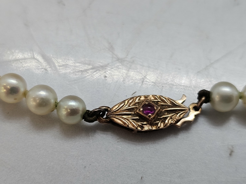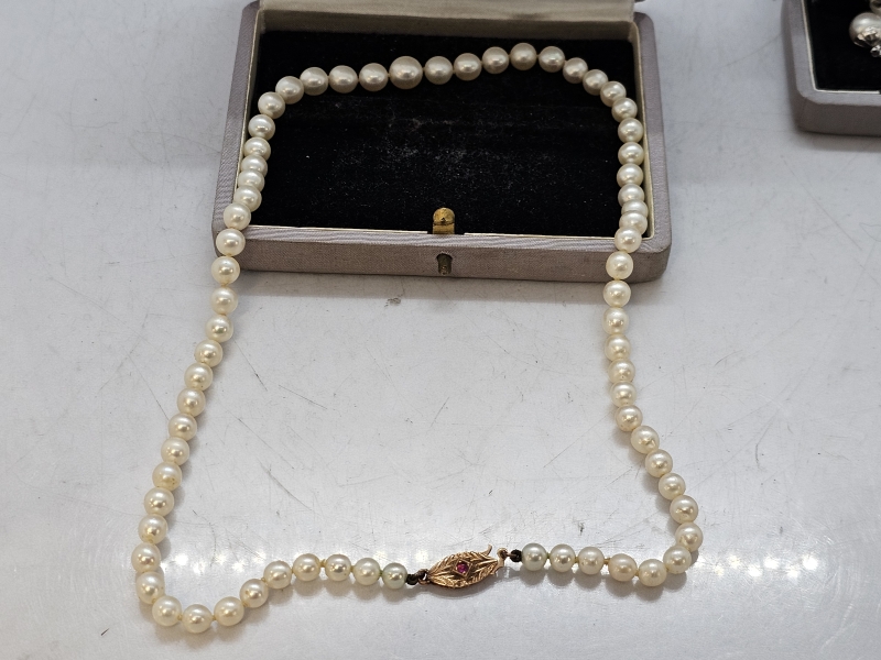 #1647 Helmikaulakoru 14k kultaisella lukolla ja korvakorut