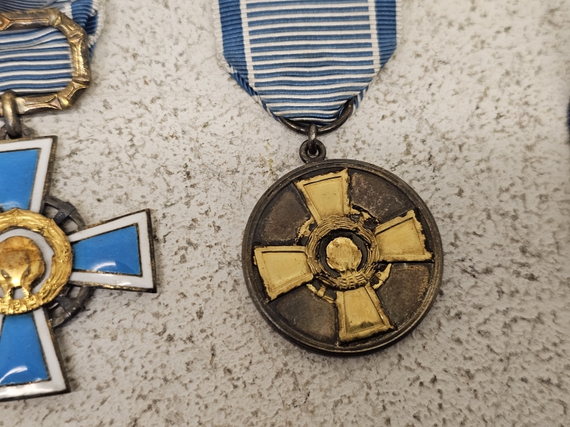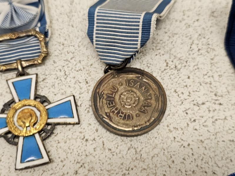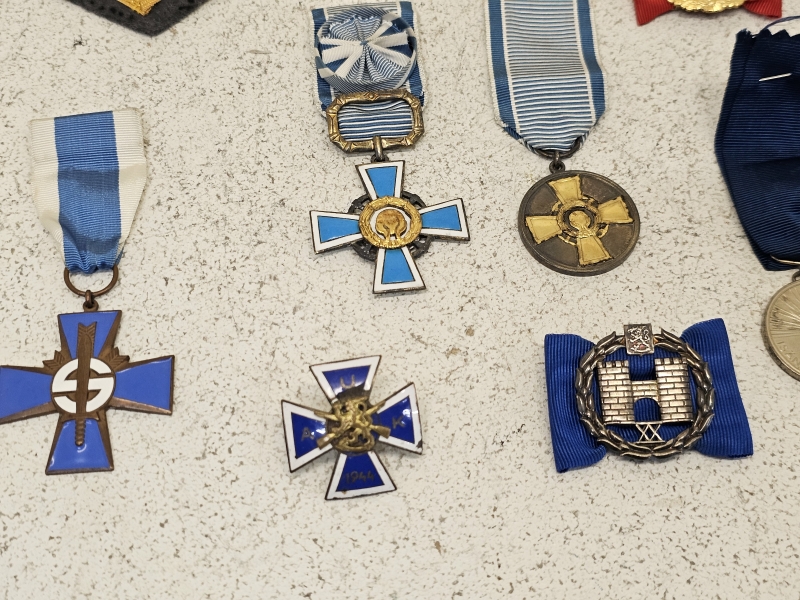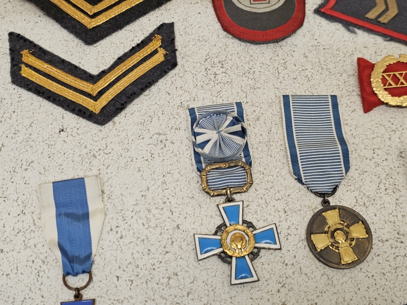 #1676 Erä militariaa: Mm. AUK 1944 risti, Sininen risti ym.