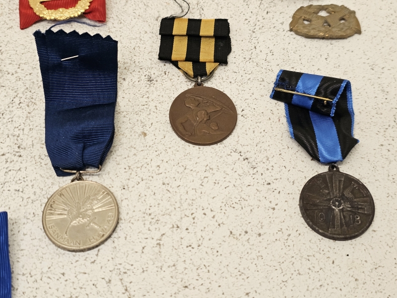 #1676 - Erä militariaa: Mm. AUK 1944 risti, Sininen risti ym.
