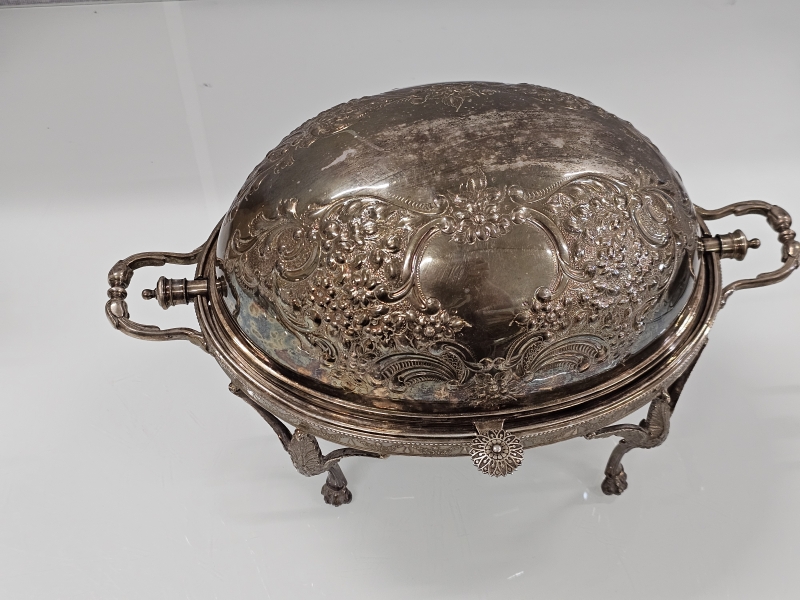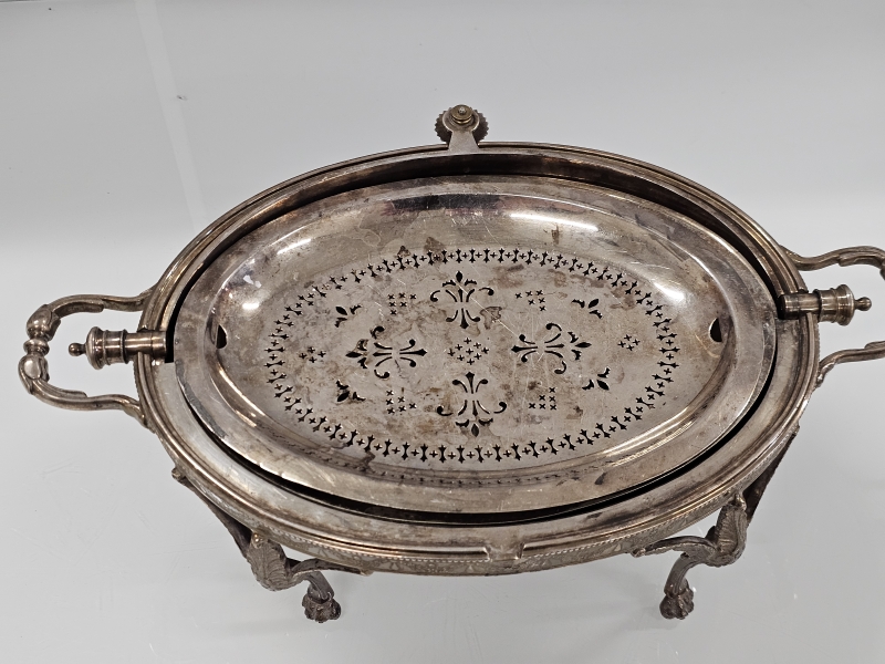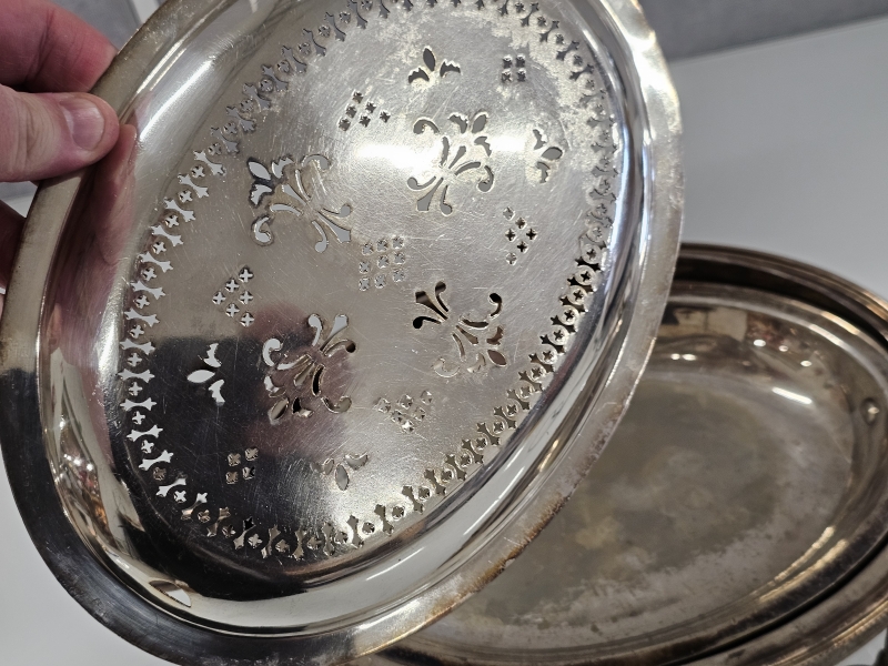 #2022 - Victoriaaninen hopeoitu tarjoiluastia, J.B. & S. leimattu