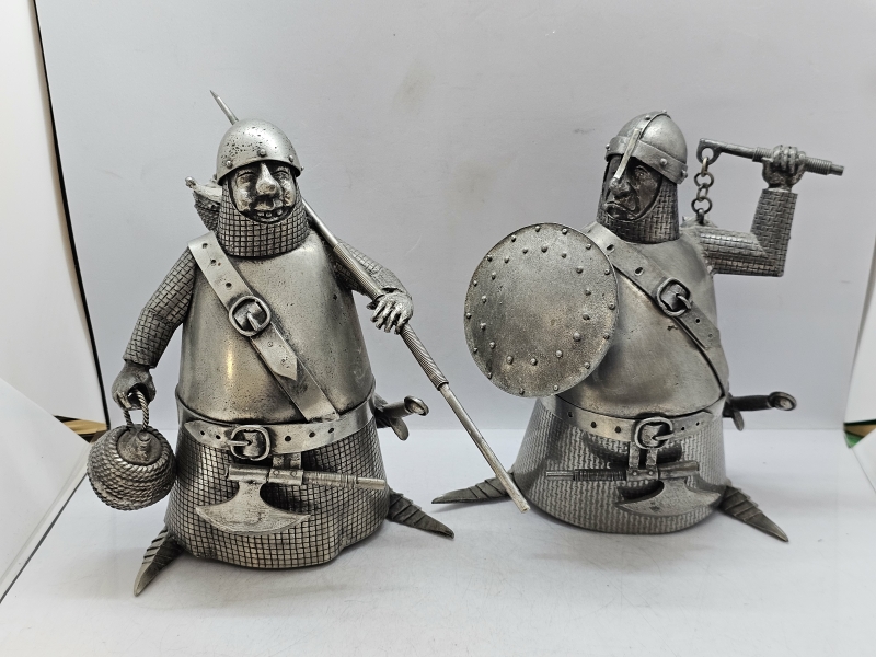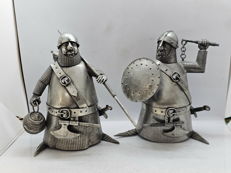 #1988 Michel Laude, 2kpl metallisia keskiaikaisia soturipatsaita