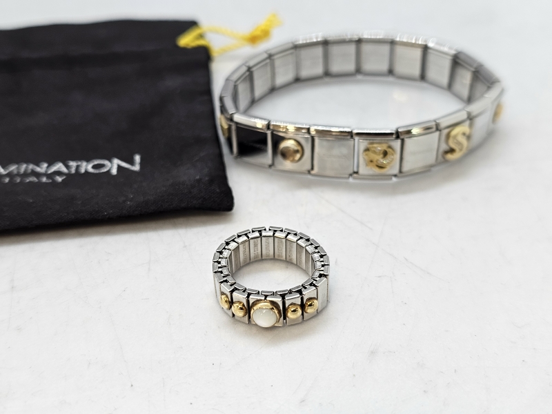 #1662 Nomination rannekoru ja sormus 18k kultaisilla osilla + 2kpl rannekoruja jotka ei Nominationia