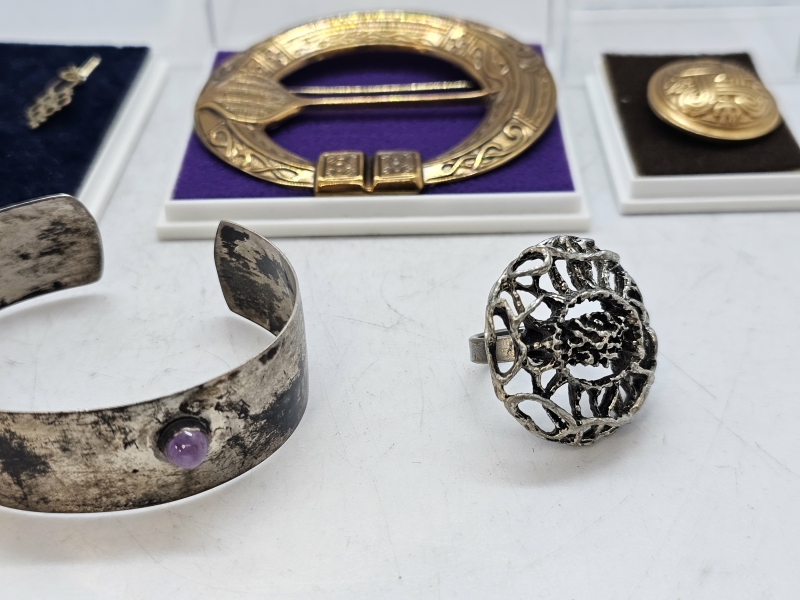 #1831 Erä koruja, mm. iso Kalevala koru solki