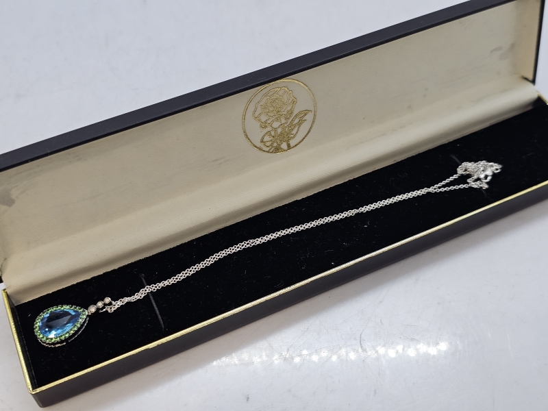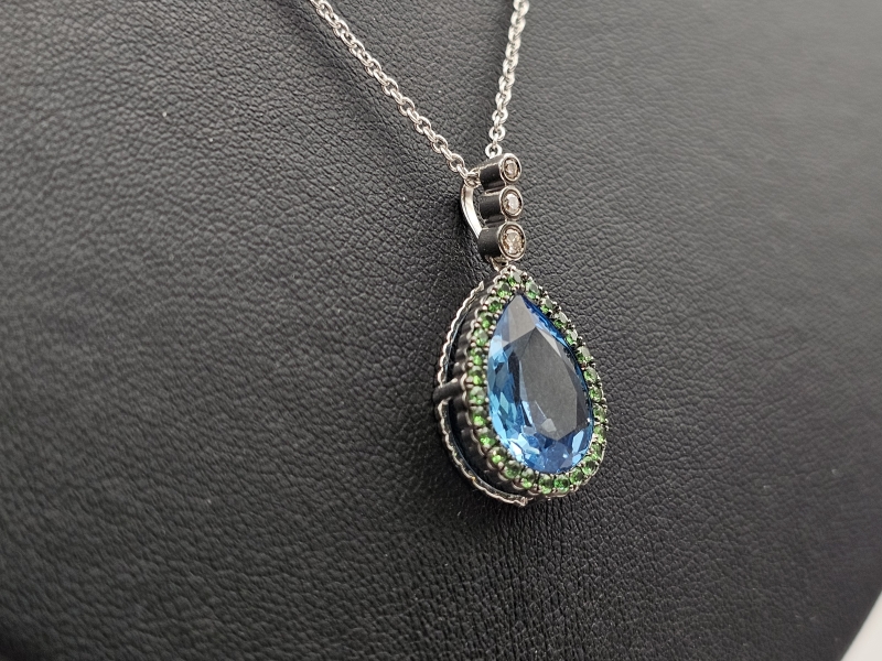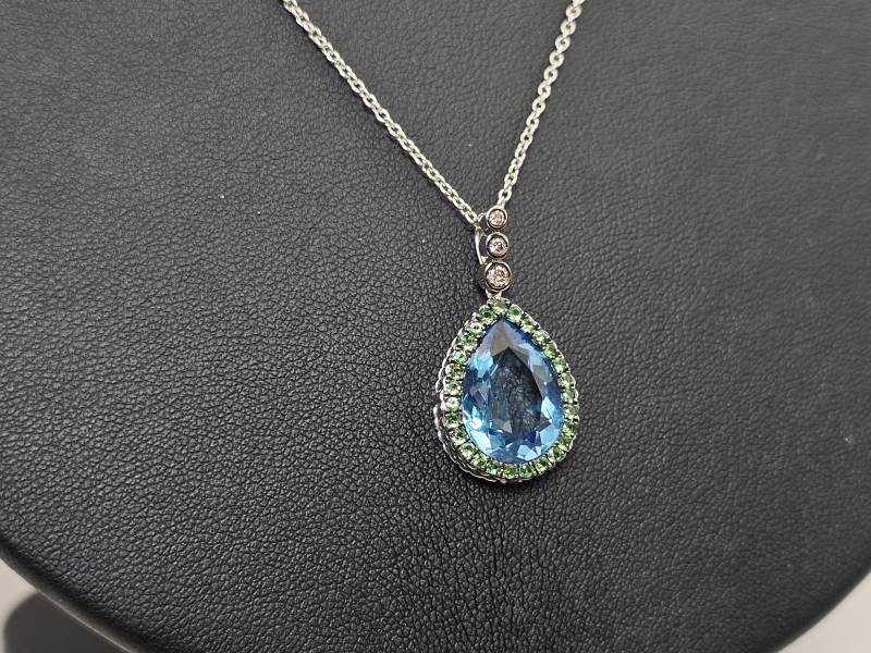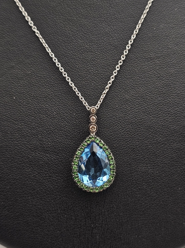 #1834 14k valkokultainen kaulakoru jossa mm. timantteja, 5,45g
