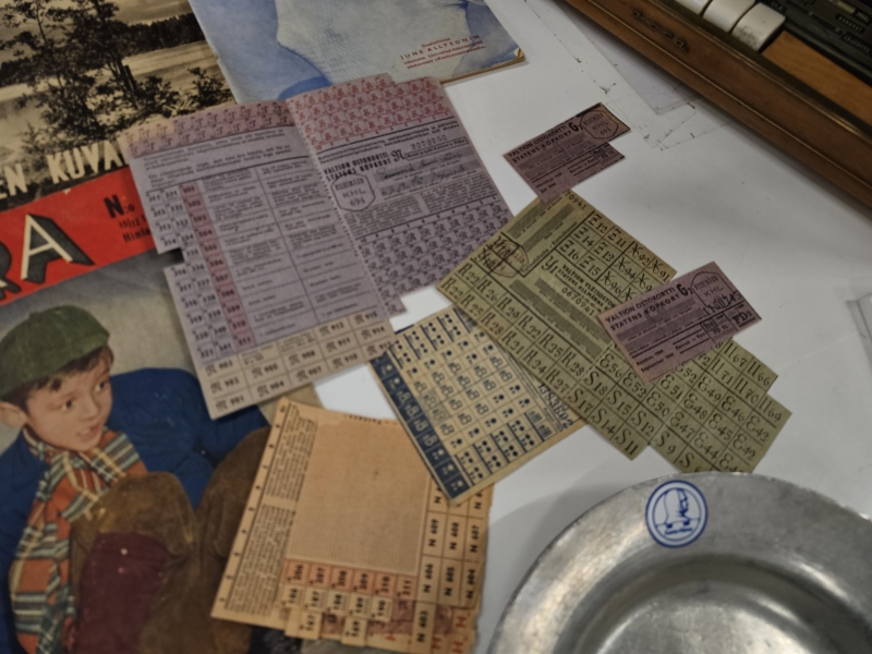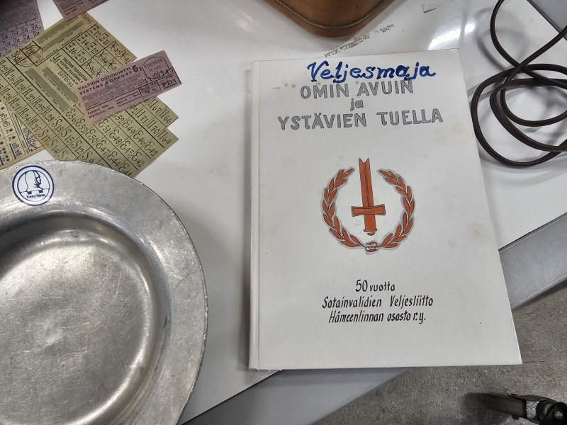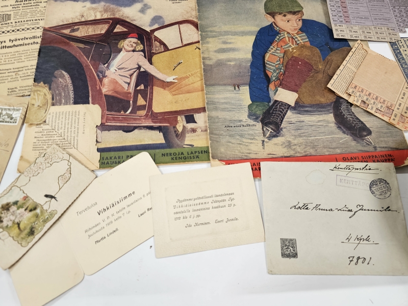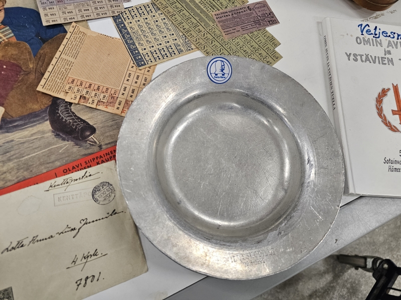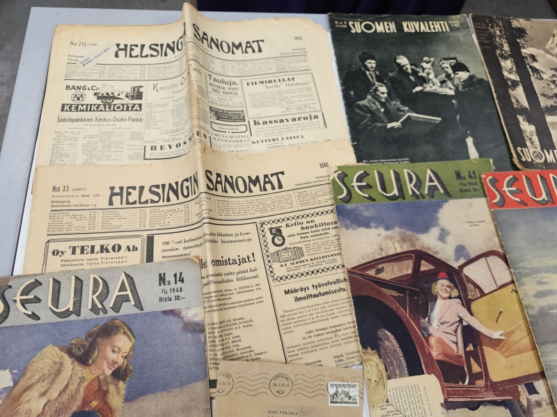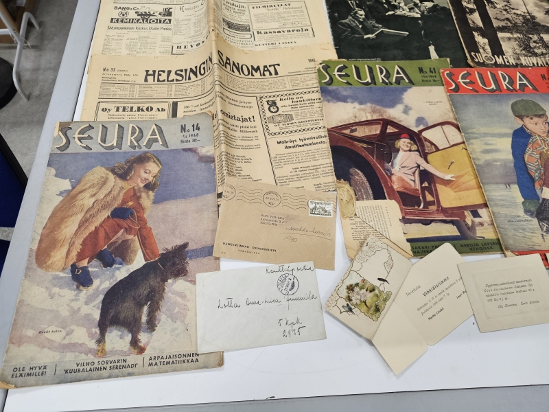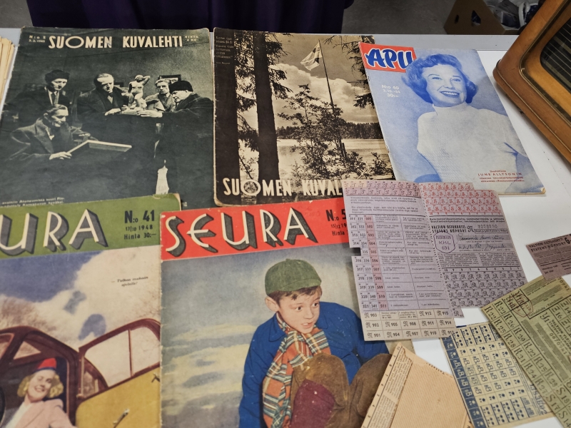 #2493 - Salora putkiradio, vanhoja lehtiä, militariaa ym.
