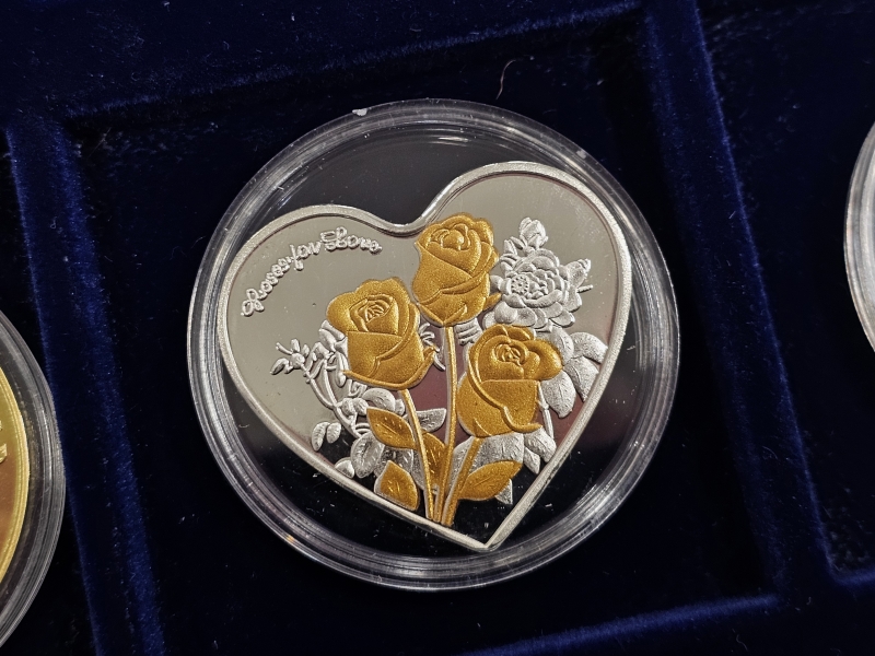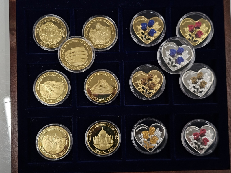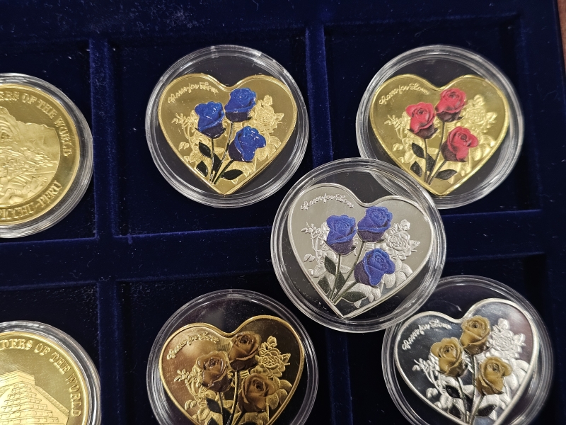 #2194 - 2kpl keräilymitalisarjoja: Maailman seitsemän ihmettä / Roses for Love
