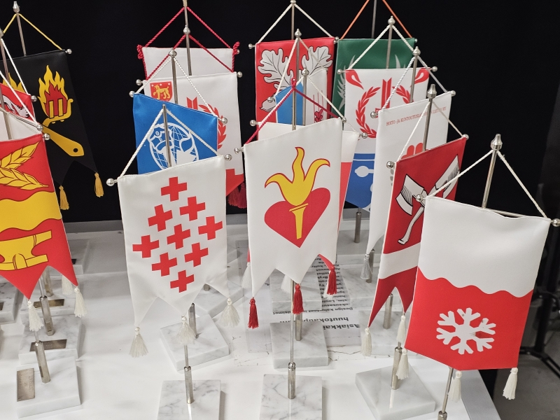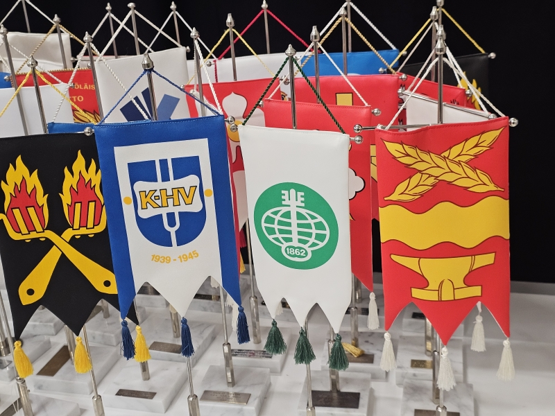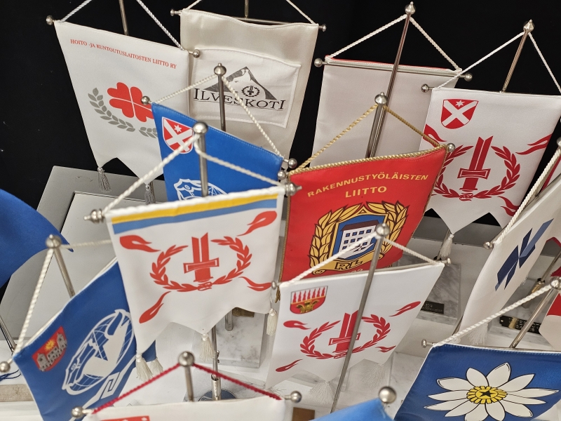 #1668 Iso erä viirejä ym.: Mm. militaria-aiheisia