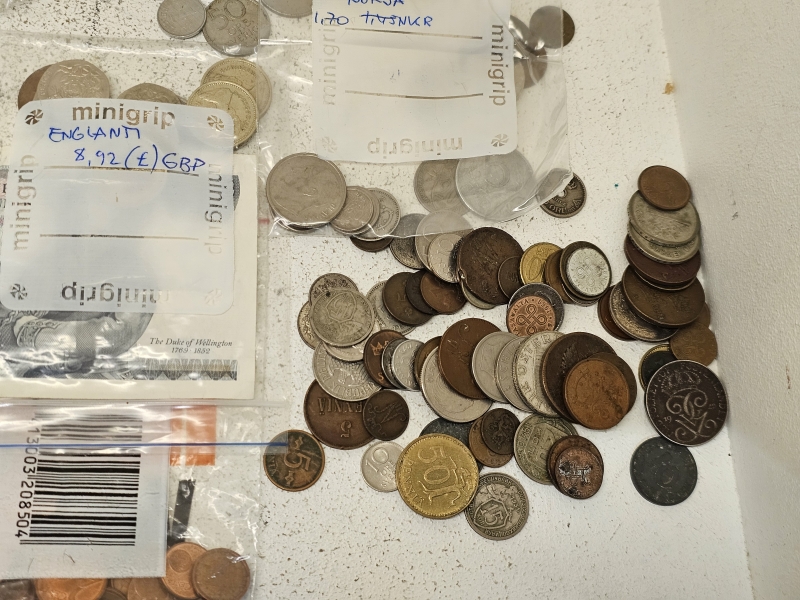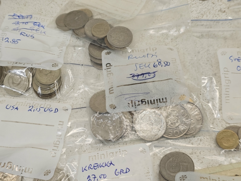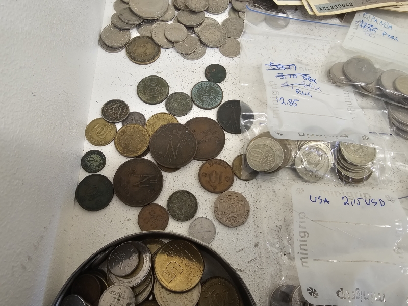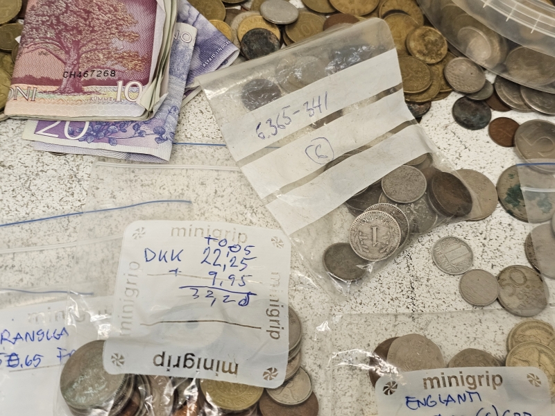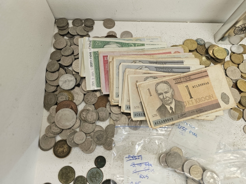 #2192 - Erä seteleitä ja kolikoita, joitakin hopeisia
