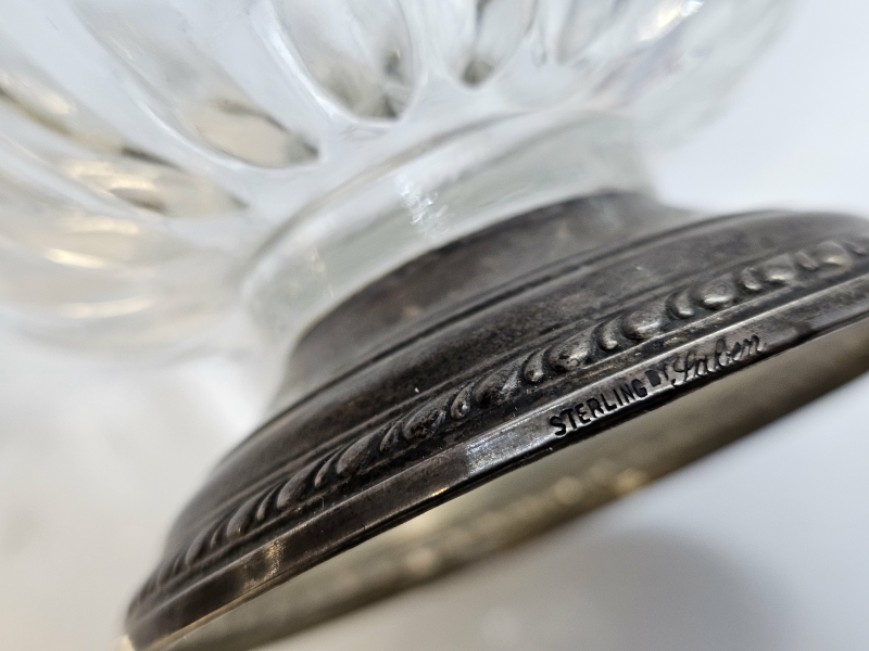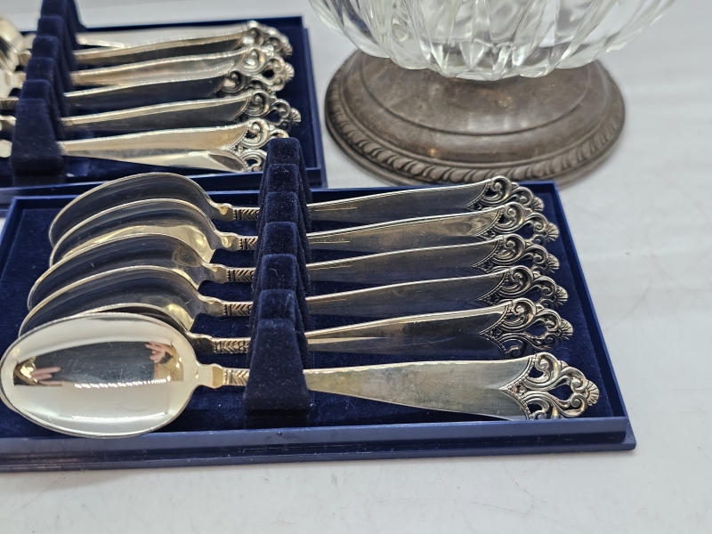 #929 - 12kpl hopeisia kahvilusikoita + kristallimalja hopeajalalla