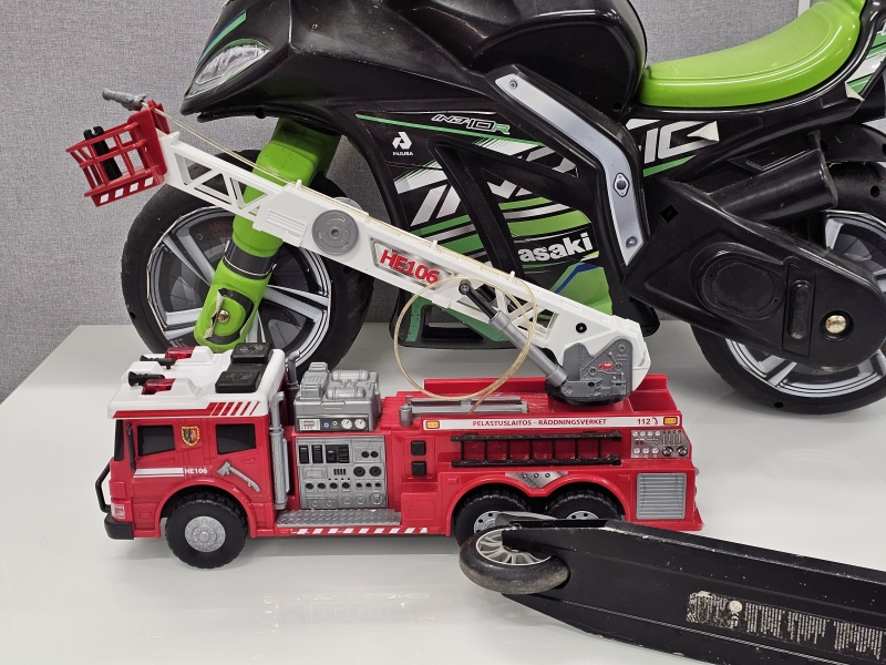 #2144 Lasten moottoripyörä + polkulauta + paloauto