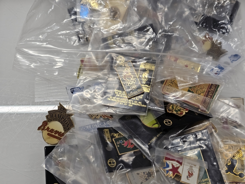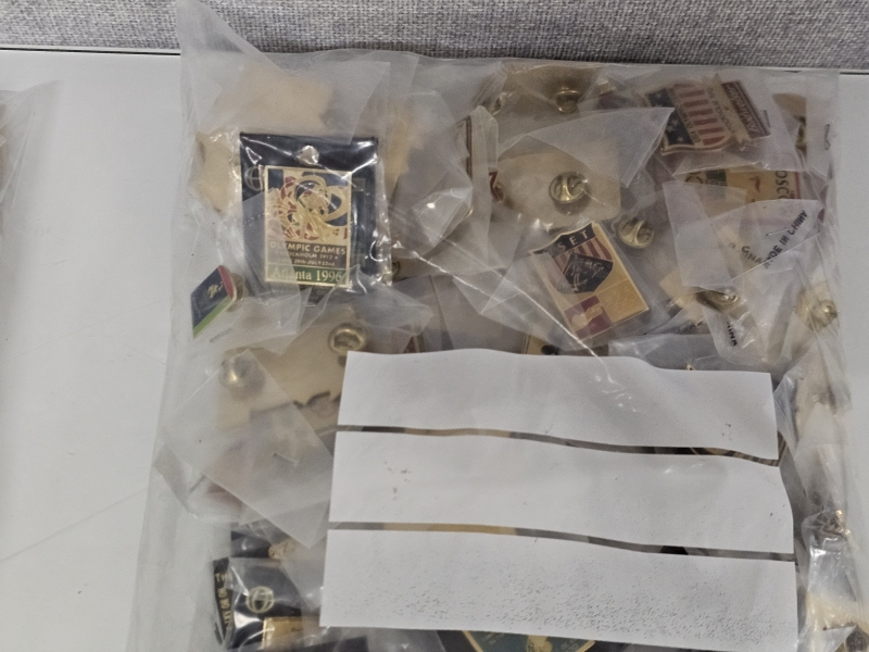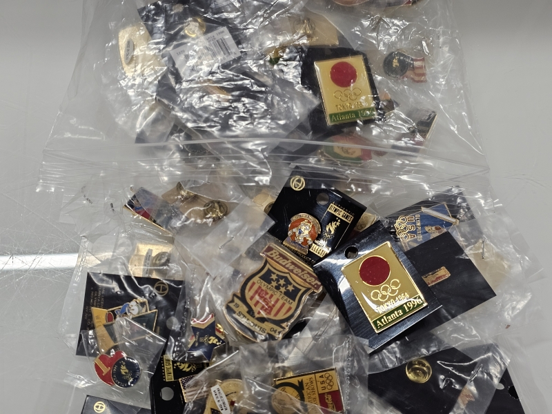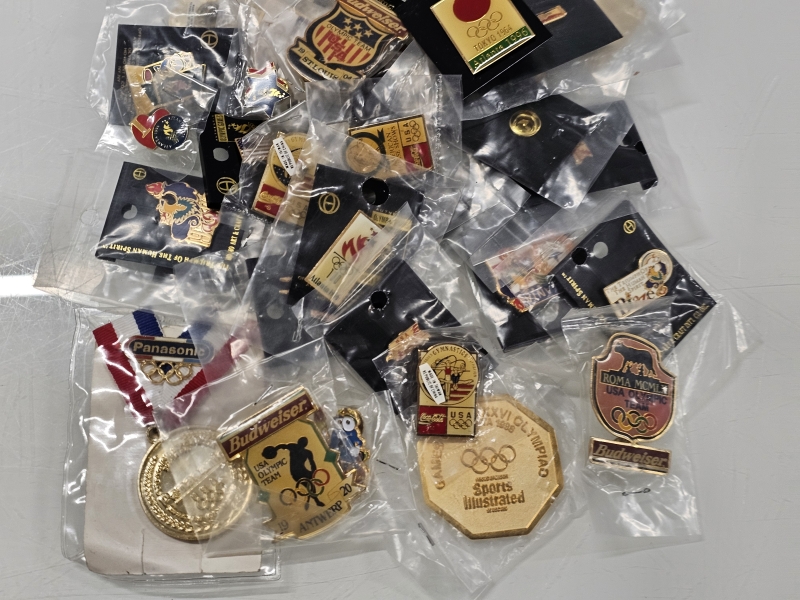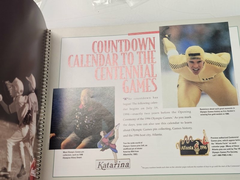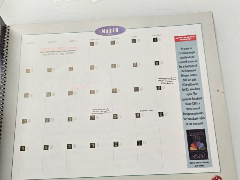 #1870 - Erä olympialaisten pinssejä, mm. Atlanta + kalenteri