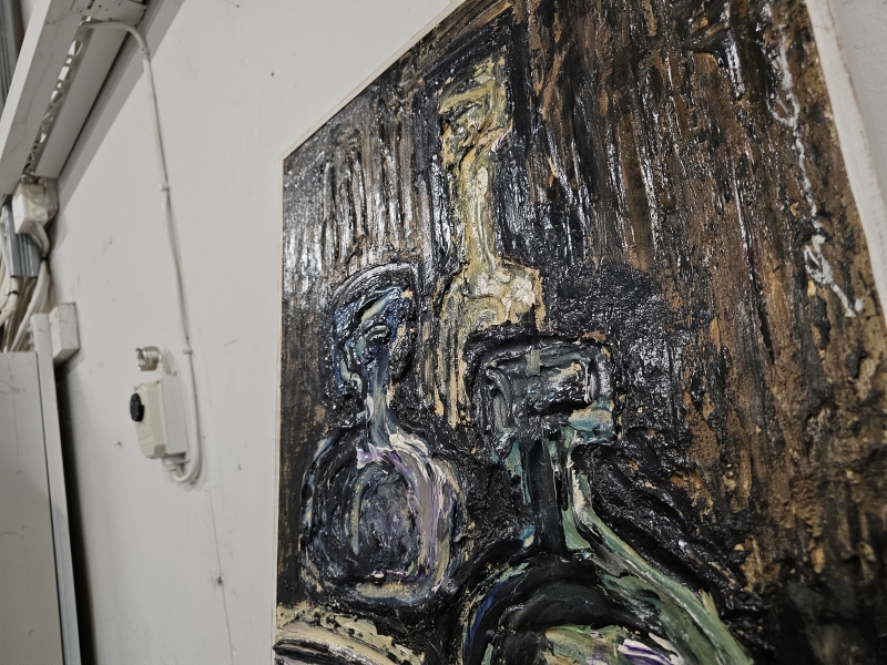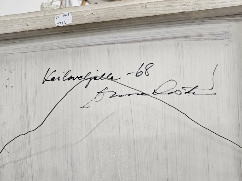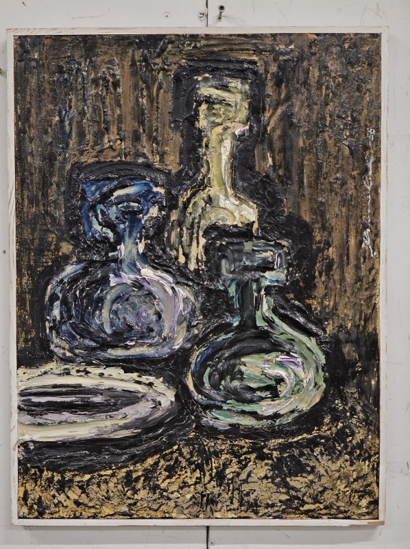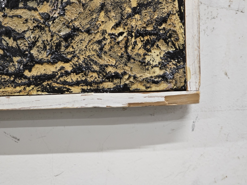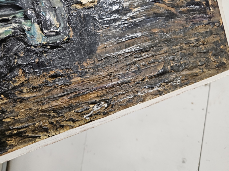 #1934 - Öljyvärimaalaus / kollaasi, signeerattu epäselvästi a tergo