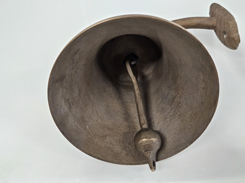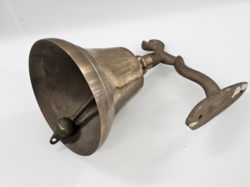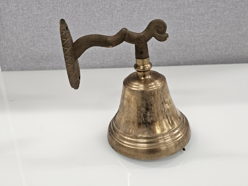 #2075 - Pronssinen seinäkello seinätelineellä, teetetty Suomessa