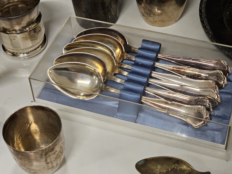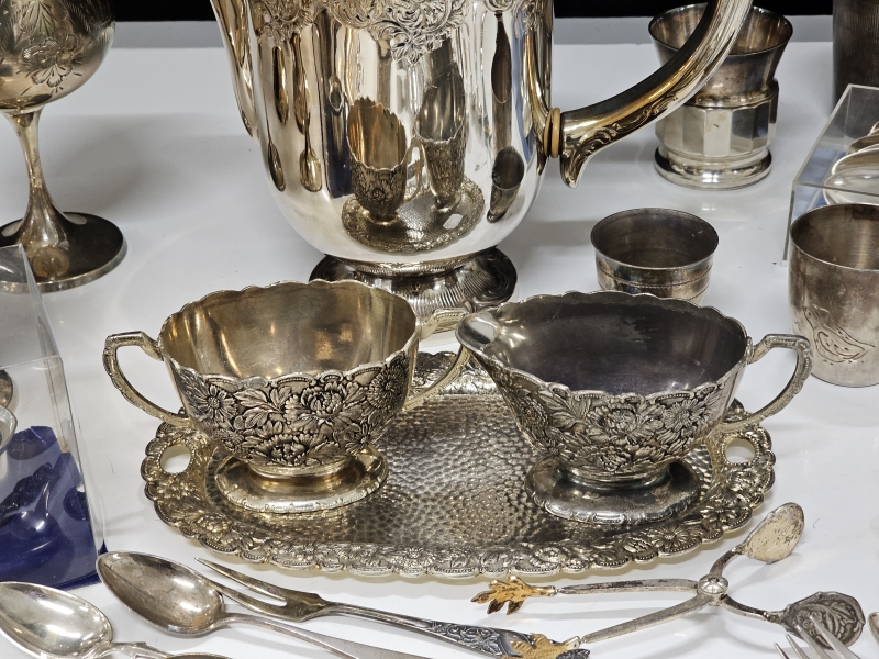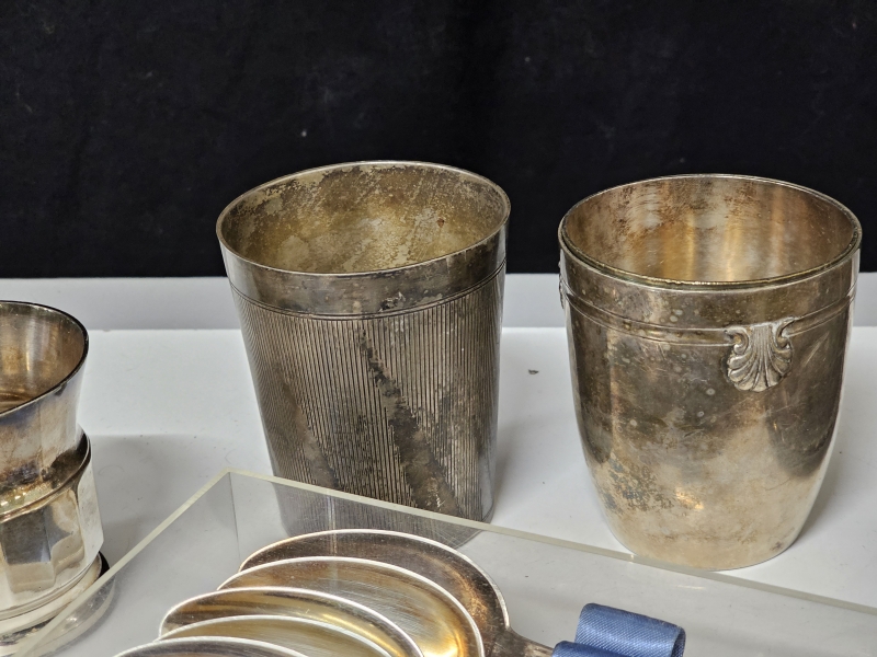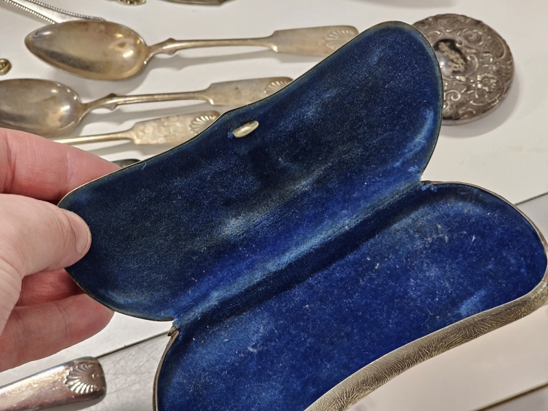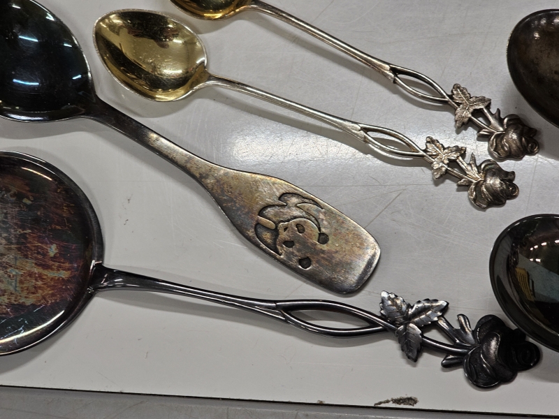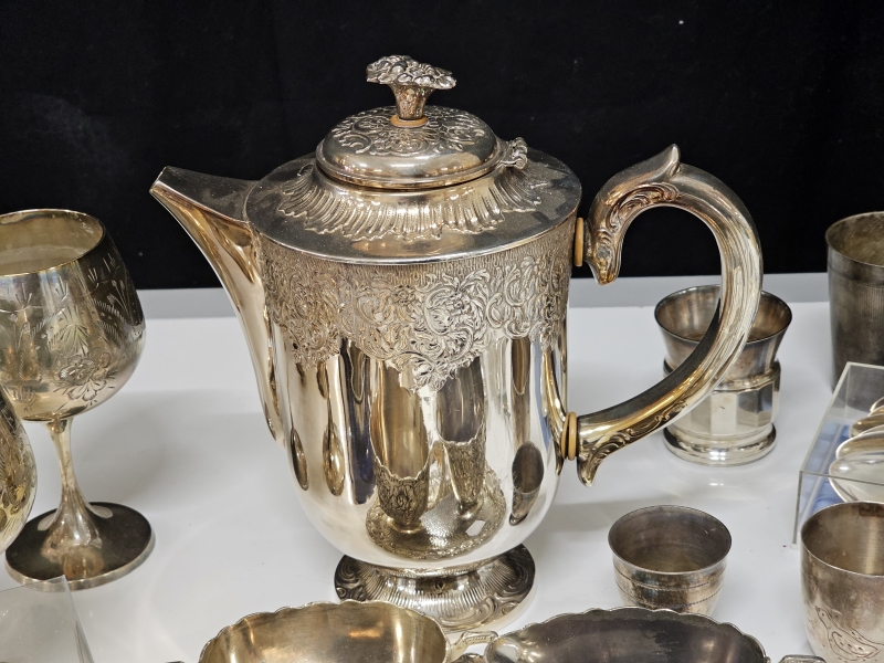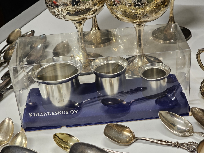 #2142 - Iso erä hopeoituja esineitä + tinaa