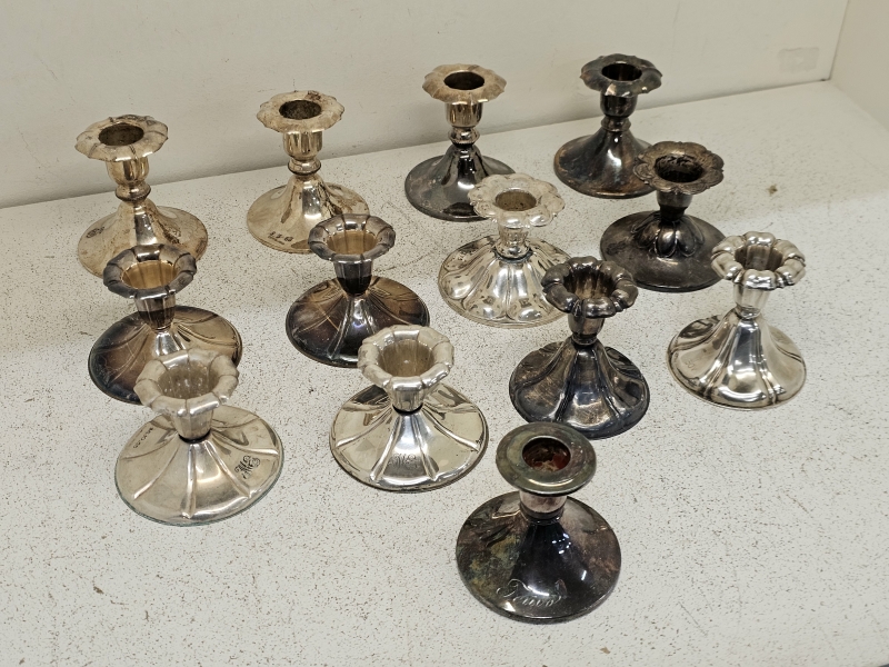 #931 - 13kpl hopeisia kynttilänjalkoja
