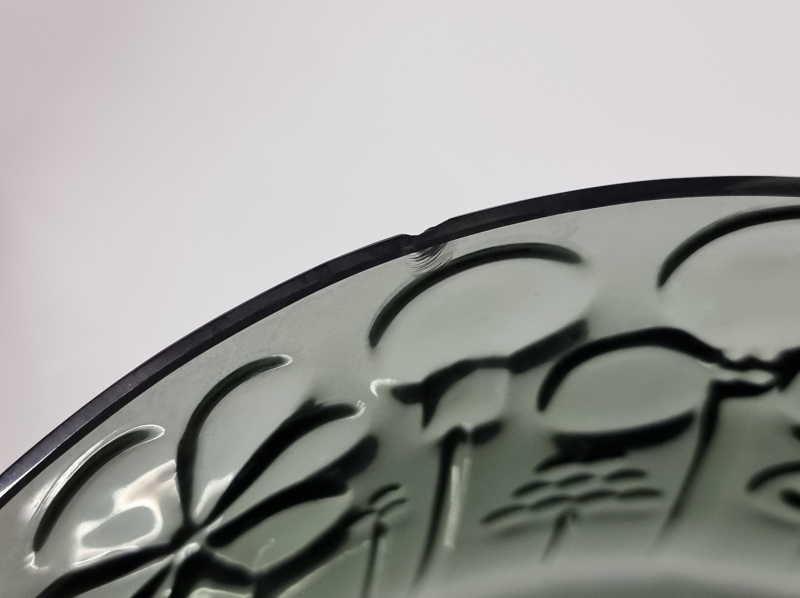 Florassa reunavika, Kastehelmi lautasessa pohjahelmissä halkeamia, muut virheettömiä, isoin halk. 31cm