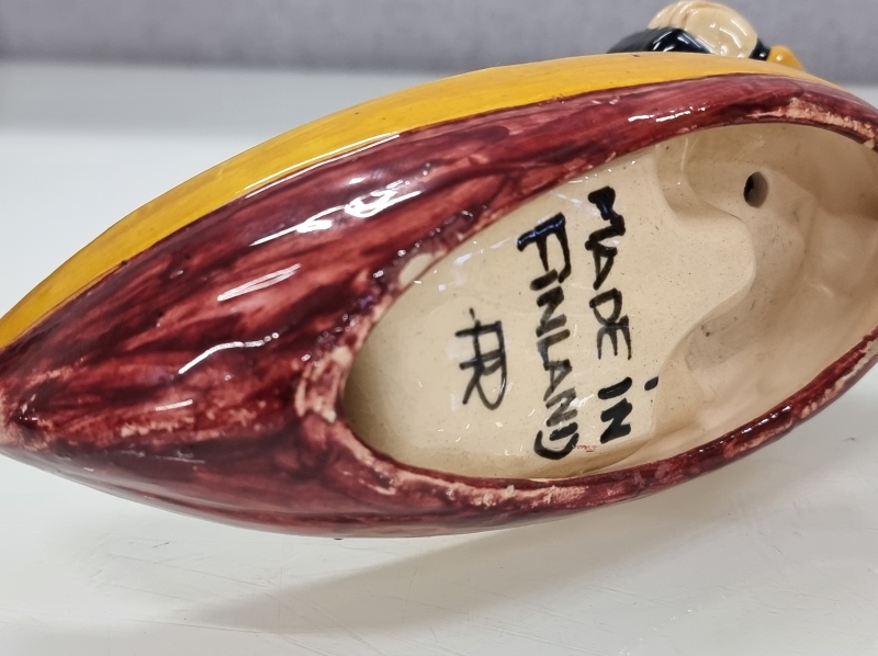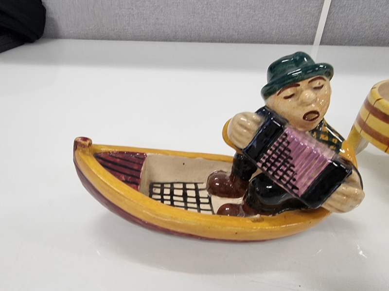 #614 - 2kpl Kupittaan savi esineitä, Haitarinsoittaja ja Pyykkimuija