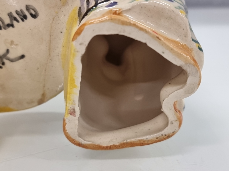 #614 2kpl Kupittaan savi esineitä, Haitarinsoittaja ja Pyykkimuija