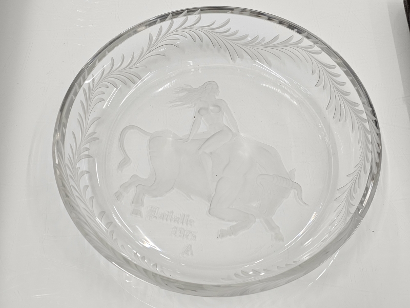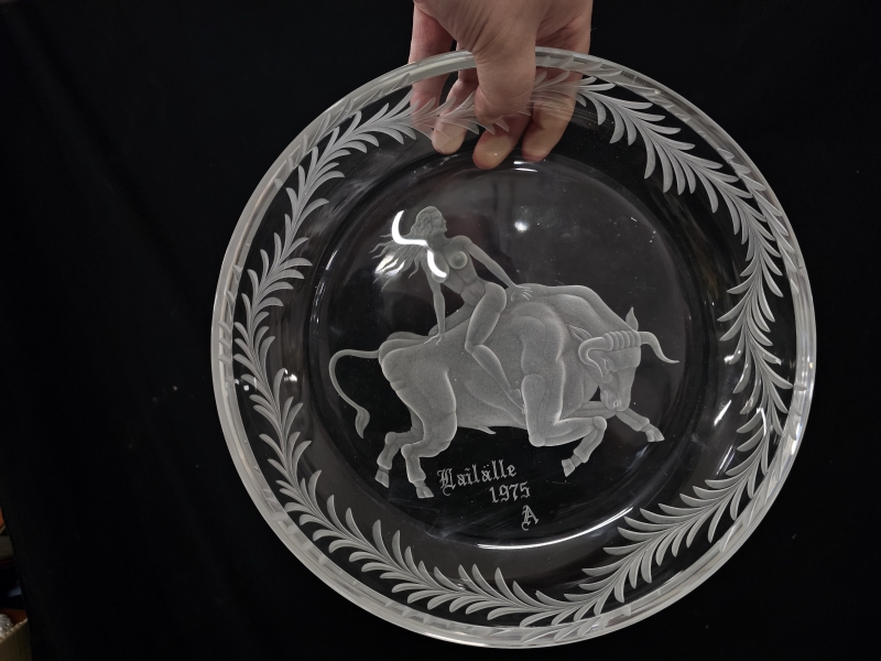 #118 Matti Okkolin, hienosti kaiverrettu taidelasimalja v. 1975